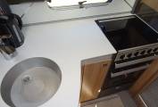 In the centre is a superb kitchen complete with a full oven and hob, sink, microwave oven, fridge freezer ,extractor, ample storage and ambient lighting. There is a very spacious wash area with a separate shower enclosure, toilet, hand wash basin and dressing area.