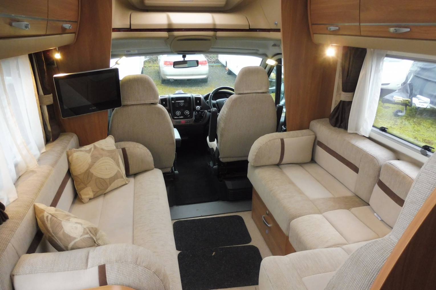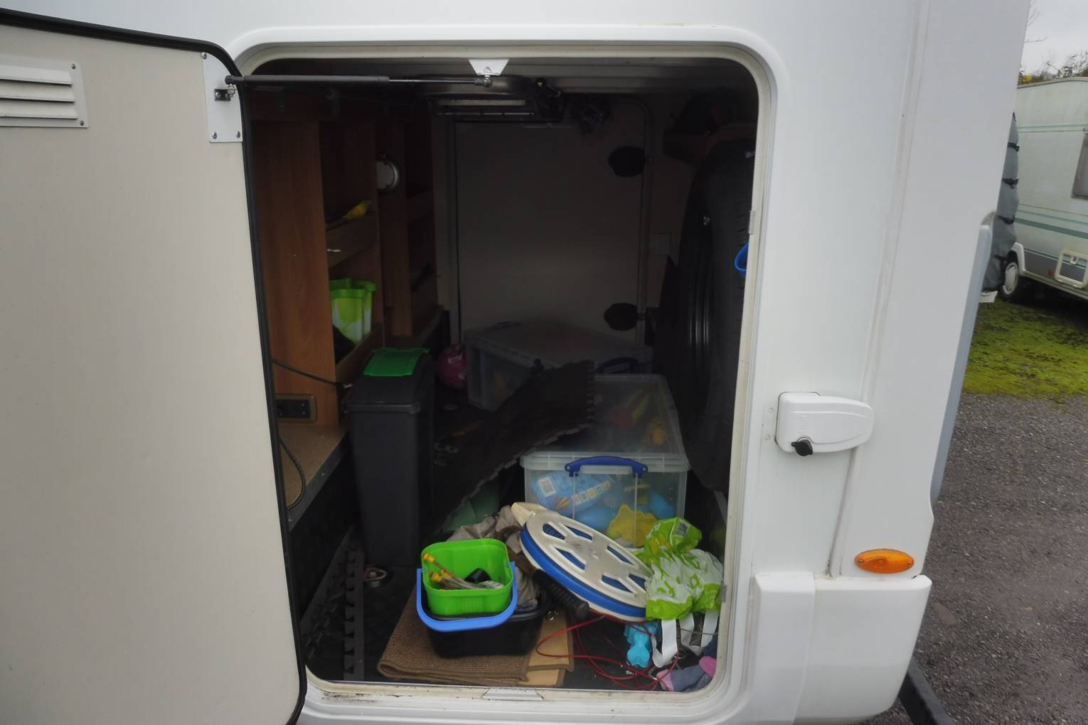 Flagship of the Swift range of motorhomes, we are delighted to present this HIGH SPECIFICATION and LOW MILEAGE low-profile 4-berth Kontiki. Ideal for long term touring or utilise the large garage and tow-bar for all kinds of sporting events. 150bhp, cruise control, cab aircon, steering wheel mounted controls and rear-view camera all make your driving experience effortless. Arrive on site, swivel the captain-style chairs and kick back. The lounge is made up of an L-shape sofa with another side facing sofa opposite. Entertain six people in comfort, watch Satellite Television, a meal or just drinks. All round windows and the large overcab rooflight provides a light and airy space, whilst the habitation air-conditioning unit ensures you will enjoy touring regardless of the climate. The mid-ships kitchen has everything you might need with dual-fuel hob, oven and grill, microwave and fridge with separate freezer. Opposite the kitchen sits a good-sized washroom with separate shower cubicle. At the rear you will find a large transverse double bed which sits over the huge garage space. Additional sleeping is provided through conversion of the lounge seating. Outside you can extend your living space by rolling out the huge Fiamma awning. There is an external BBQ point, two refillable gas bottles, tow-bar and roof ladder. The huge garage is fitted with chequer plate and shelving and would be suitable for storing bikes, karts etc. A highly desirable motorhome, we don’t believe it will be around for long. Please contact me for further details and many more photos. This vehicle is located in Caerphilly.