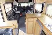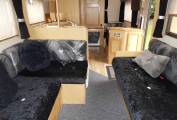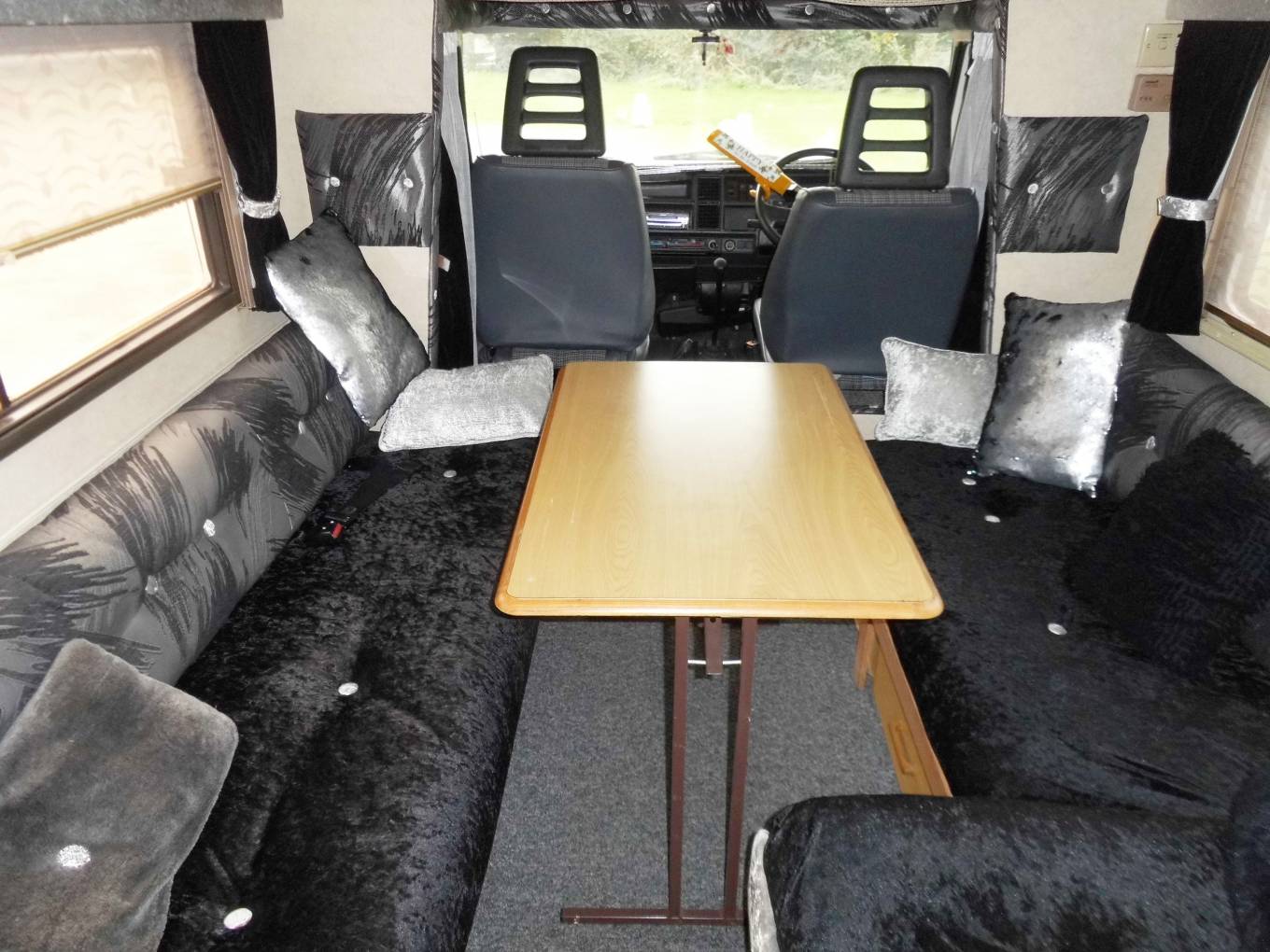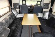 The forward lounge has 2 large side facing sofas which provide loads of comfortable seating and there are 3 lap belts as well. There is a freestanding dining table that can be added to give you a very spacious dining area for you and the family or for you and your partner. The front passenger seat swivels so there's even room for one more diner if needed.
