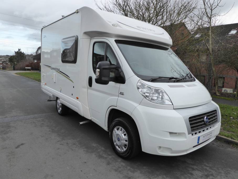 Call with any questions 01423 5609985. This a great example of the Swift Lifestyle 530 LP coachbuilt motorhome, first registered in 2008 with a 2198cc diesel engine, a MOT lasting until October 2019 and 5-speed manual gearbox. This lovely 2 berth motorhome benefits from the Truma electric gas blown heating, Dometic 3-way fridge, Cello TV , Sharp microwave oven and Vision plus status 560 digital ariel. The washroom is very spacious for this small footprint motorhome and the oven, grill combination works well for cooking. Both the passenger and driver seats swivel, there is radio CD player plus blinds for all the cab windows. Externally it comes with a bike rack, awning and the vehicle benefits from a fantastic service history and cambelt change at Sept 2016, 38026 miles. An early viewing would be recommended, and extra pictures are available from the broker. Part Exchanges welcomed on this vehicle, for further information and photos please call us on 01423 609985 quoting Reference 87315