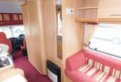 Wood effect flooring with loose fit carpets, Truma blown-air central heating and hot water heating, black-out blinds and fly-screens throughout.