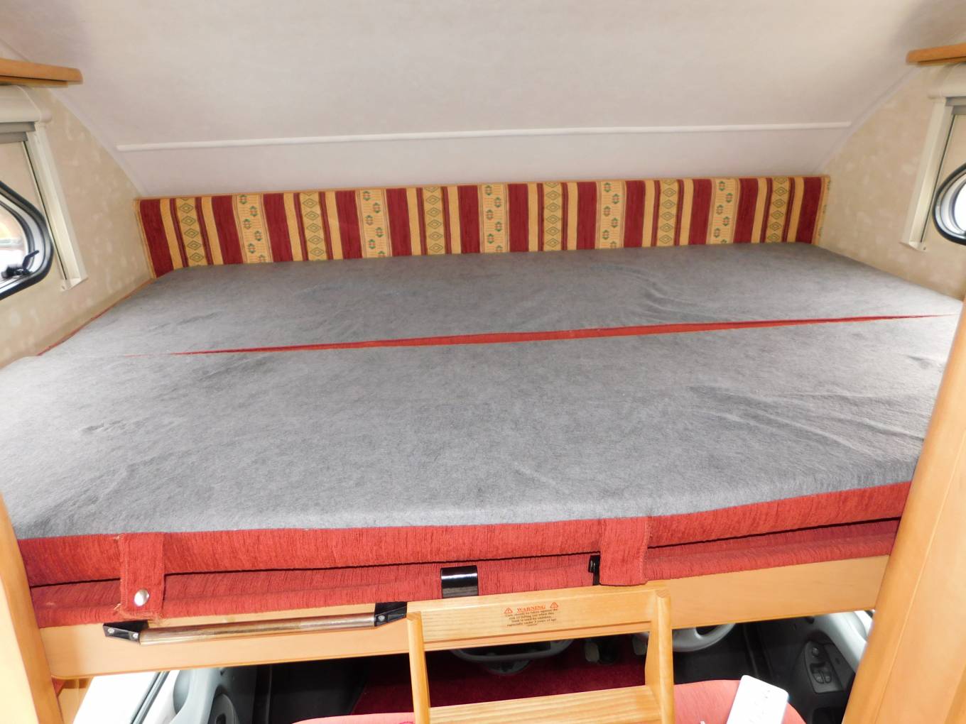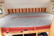 The over-cab bed is large and accessed via a wooden ladder, there's a window each side and night-time reading light, privacy curtains and when not in use it all pushes forward to give additional headroom in the cab.