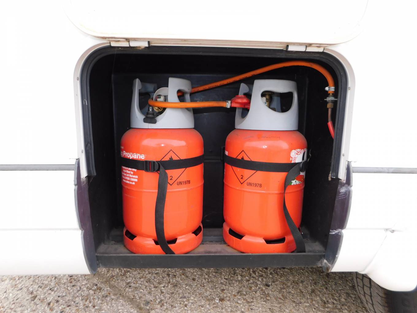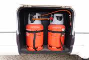 Outside you have a Fiamma wind-out sun canopy, a Fiamma bike rack for two cycles, gas locker with two included propane bottles, double electric step and white colour coded bumpers.