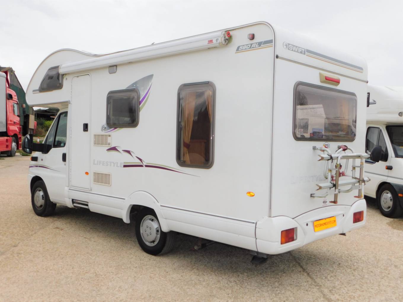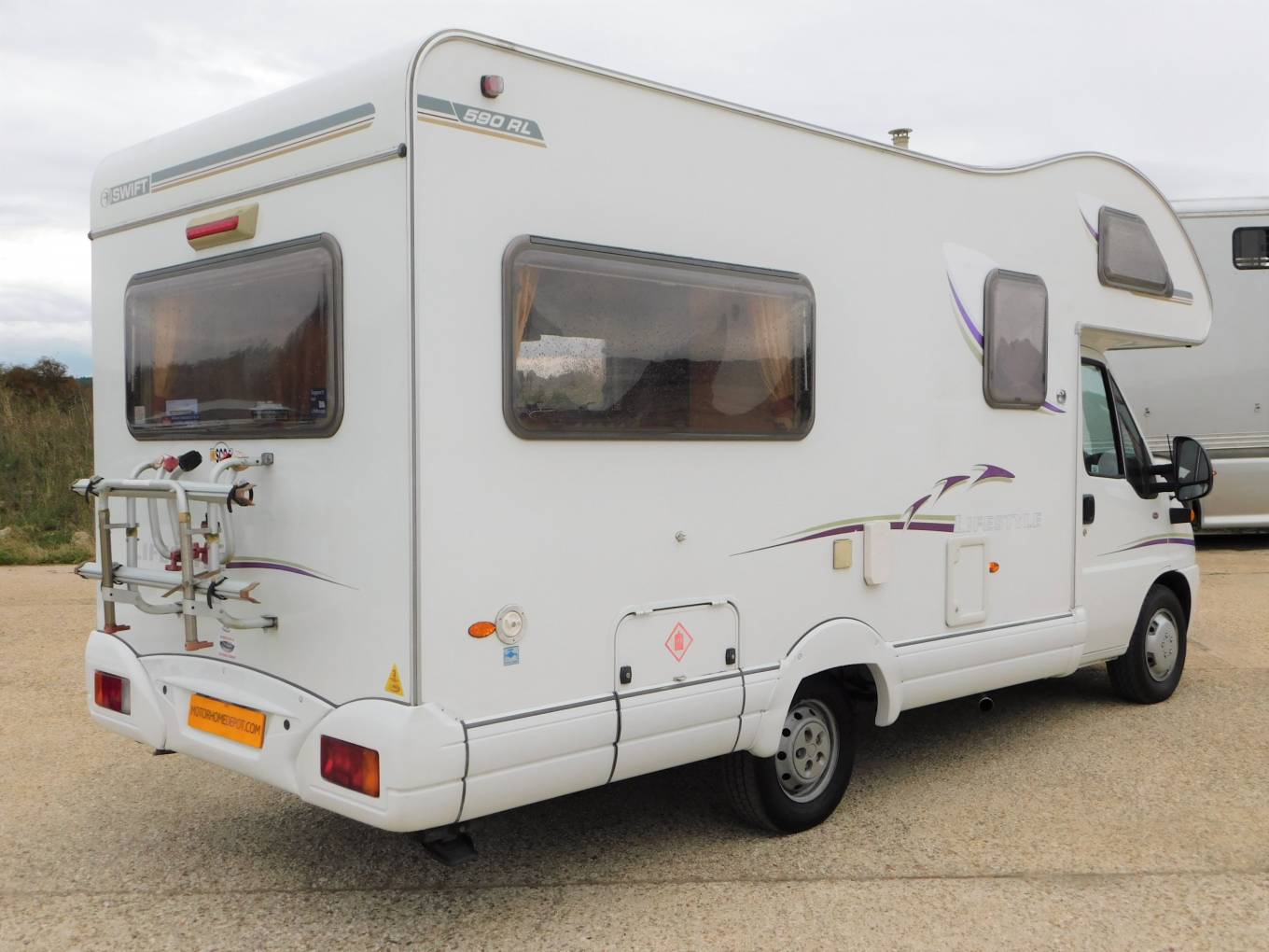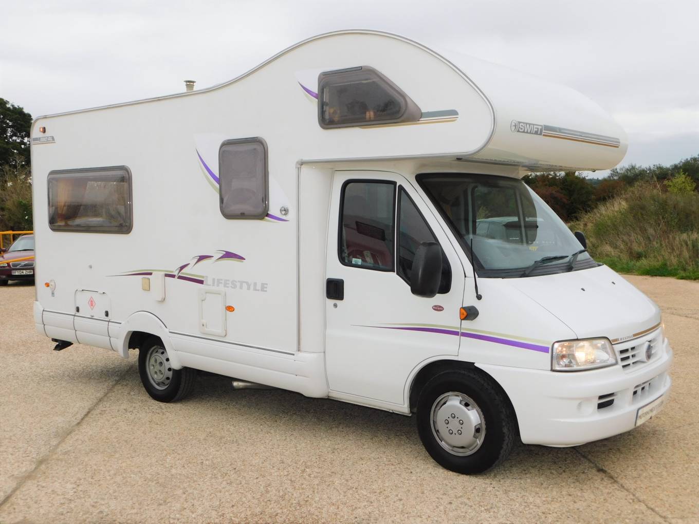The ever popular Swift Lifestyle 590 RL, 2003 model, 4 Berth with rear L-Shaped lounge and over cab bed. On a Fiat 2.3 Turbo Diesel, first registered on 4th July 2003 and a very long MOT that runs through to 16th August 2019 with no advisories.
