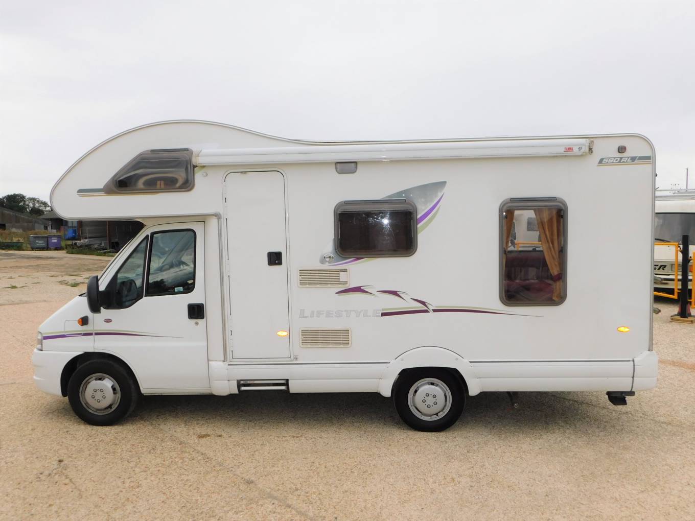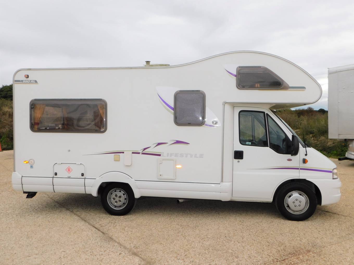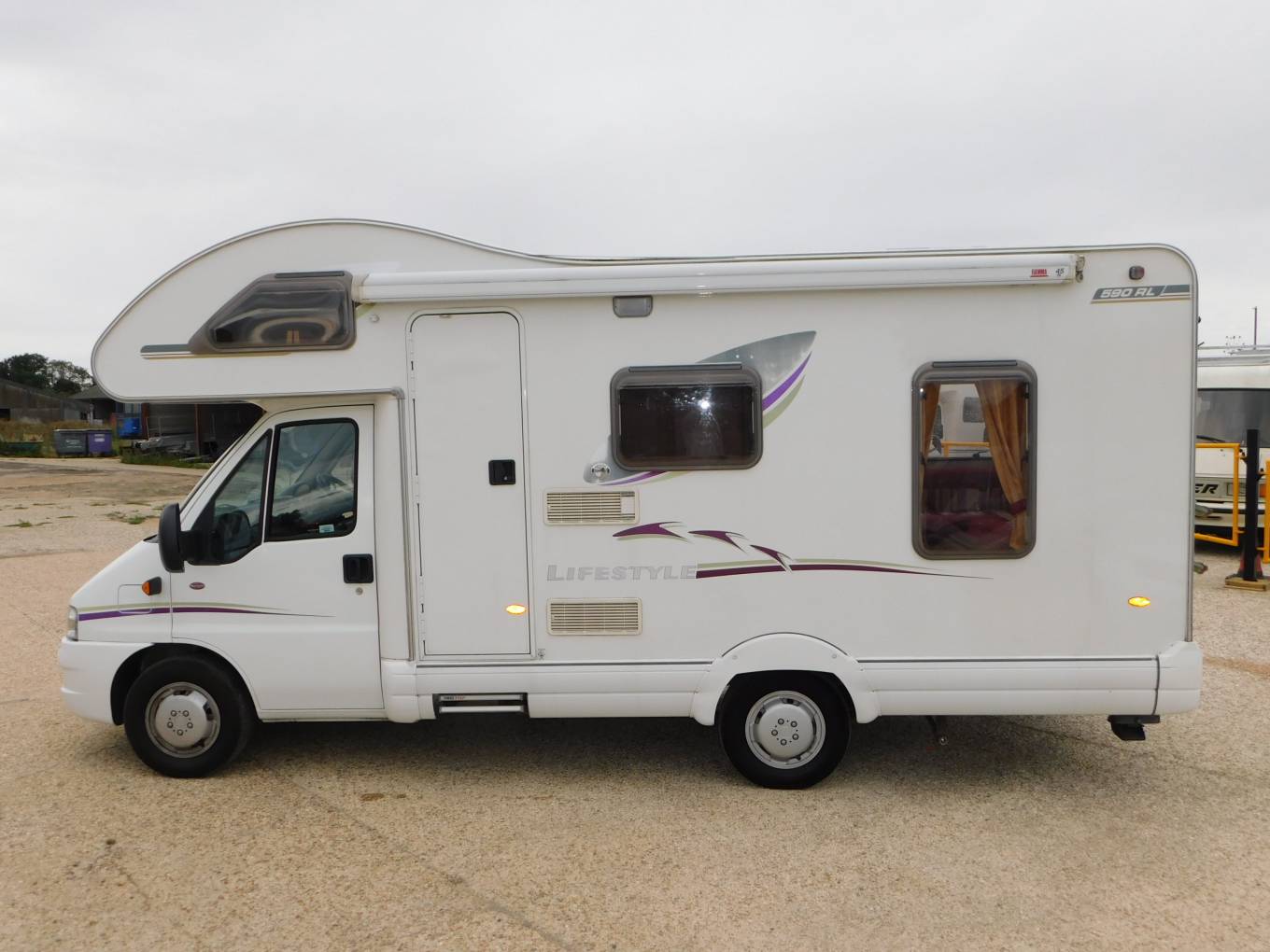 The ever popular Swift Lifestyle 590 RL, 2003 model, 4 Berth with rear L-Shaped lounge and over cab bed. On a Fiat 2.3 Turbo Diesel, first registered on 4th July 2003 and a very long MOT that runs through to 16th August 2019 with no advisories.