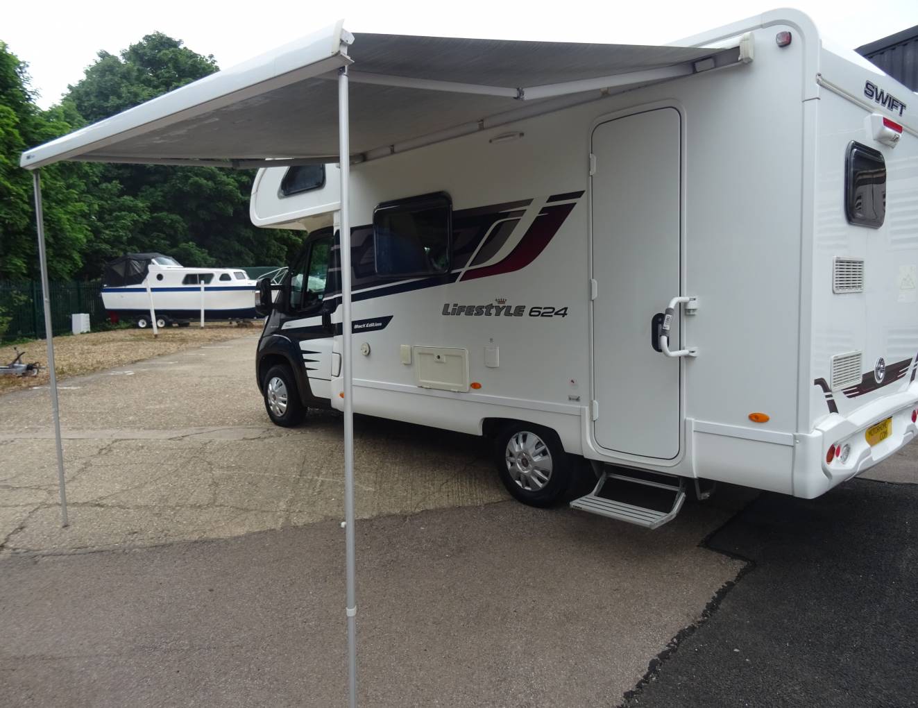 This 2015 Swift Lifestyle 624 Black Edition is in superb condition throughout. It is built on the Fiat Ducato, comes with the 2.3 130 Bhp Multi-jet diesel engine and has the Comfort-matic automatic gear box. It has only 8800 miles on the clock. The current owner bought the motorhome at only 500 miles and has had annual Hab checks to date. It was last serviced at 5132 miles, and had a Hab check 30th June 2022 and has a full MOT till 29th July 2023 (No advisories).