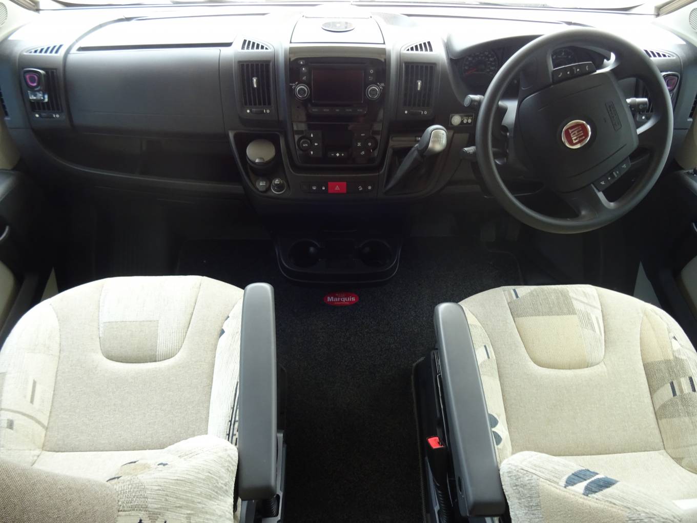 The above cab bed measures 6ft 7" by 4ft 6" and pushes out of the way when not needed. The cab is very well equipped with air con, cruise control, Sat Nav, DAB radio, twin view reversing camera, passenger and driver air bag, cobra alarm, double cup holder and tablet mount. The motorhome has curtains, blinds and fly screens throughout (including sky lights), fitted screen blinds with thermal side window covers and a full winter cab cover. The heating and hot water is on electric and gas (Truma) with i-net control.