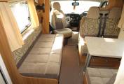 the front of the motorhome is an extremely comfortable lounge and dining area