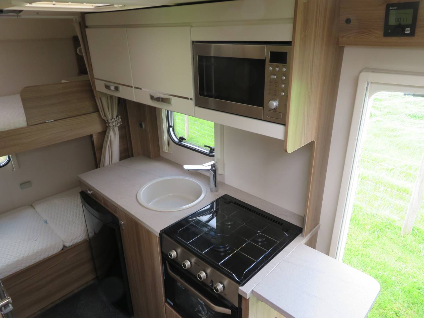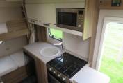 The front of the vehicle contains a full dinette which can accommodate four passengers in the rear of the motorhome, all with the safety of three-point safety belts. The dining area also includes a dinette facing sofa and clever seat extension allowing for the dinette to be converted into an L-shaped lounge that is ideal for the whole family to sit around, easily accommodating 6 people. In the centre of the motorhome the large family washroom is situated across from a fully equipped kitchen that is perfect for cooking large meals for everyone.