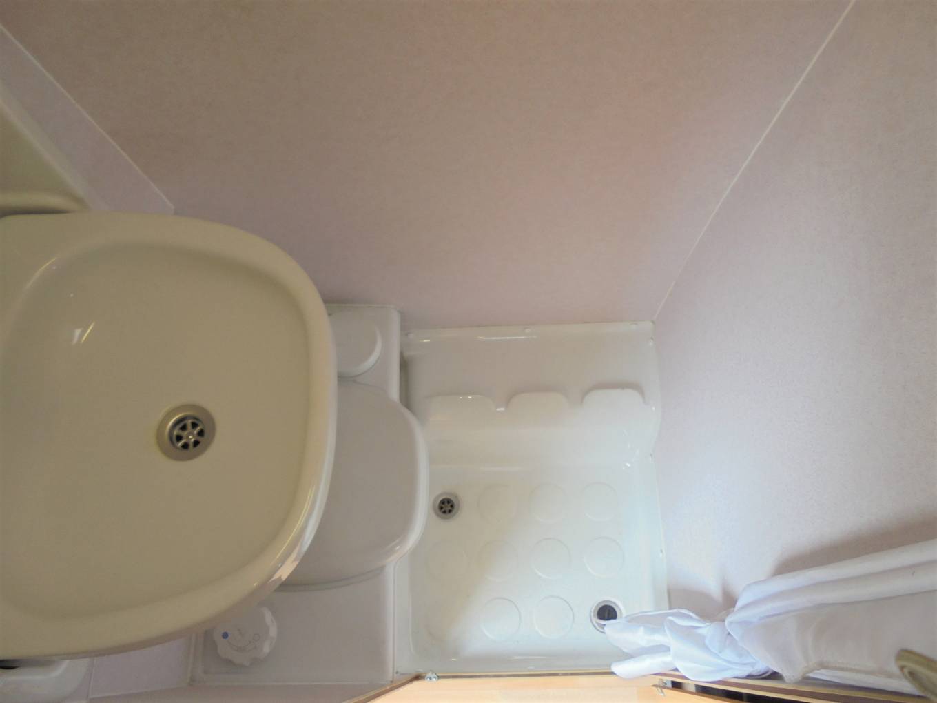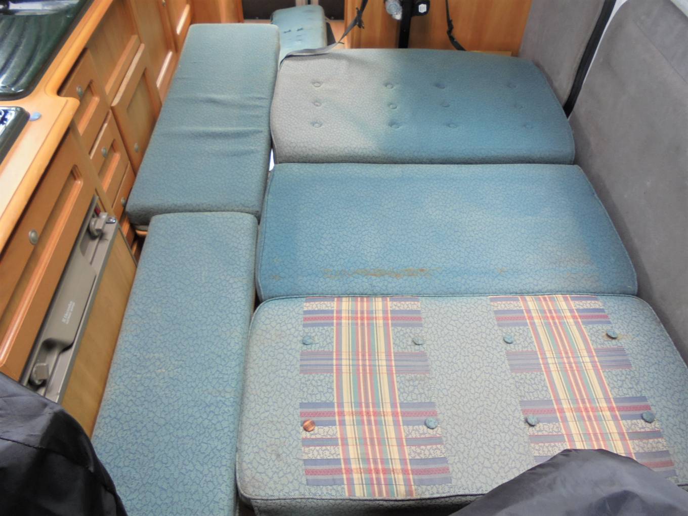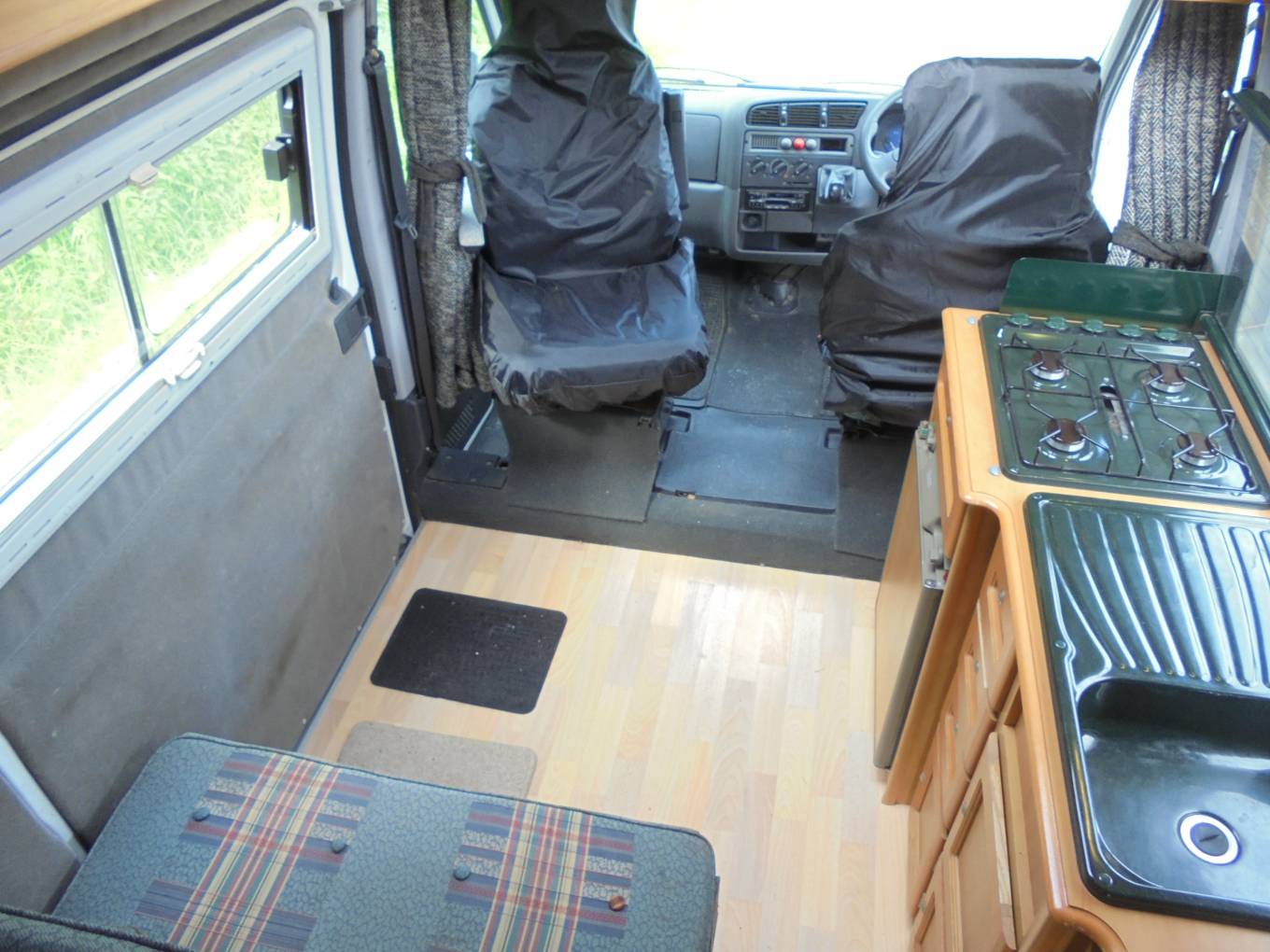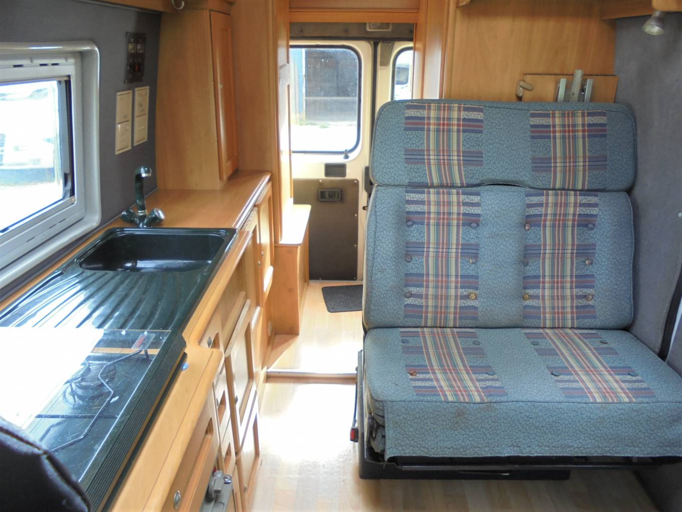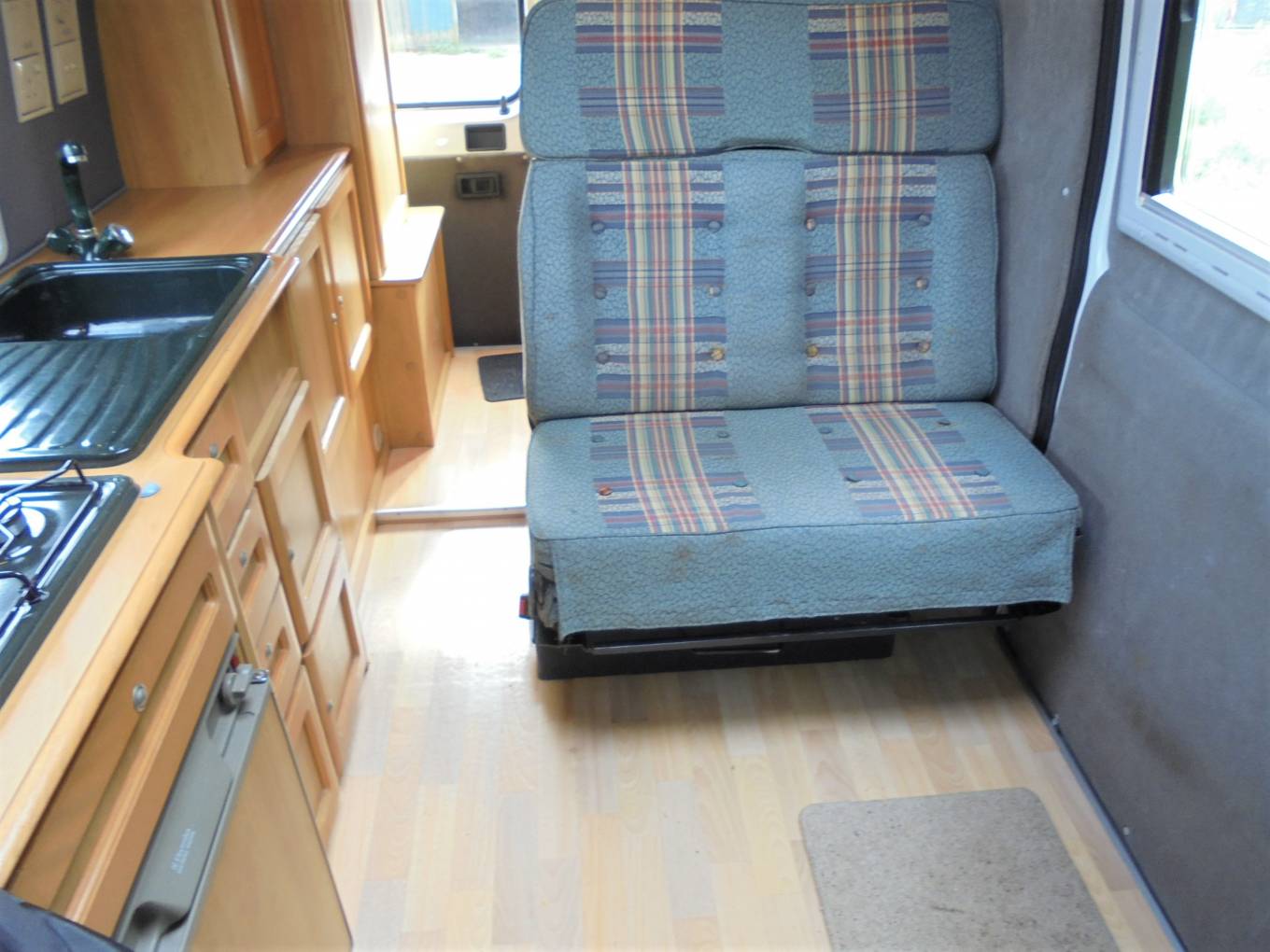 Layout is central kitchen and lounge area which converts to double bed and rear washroom.
