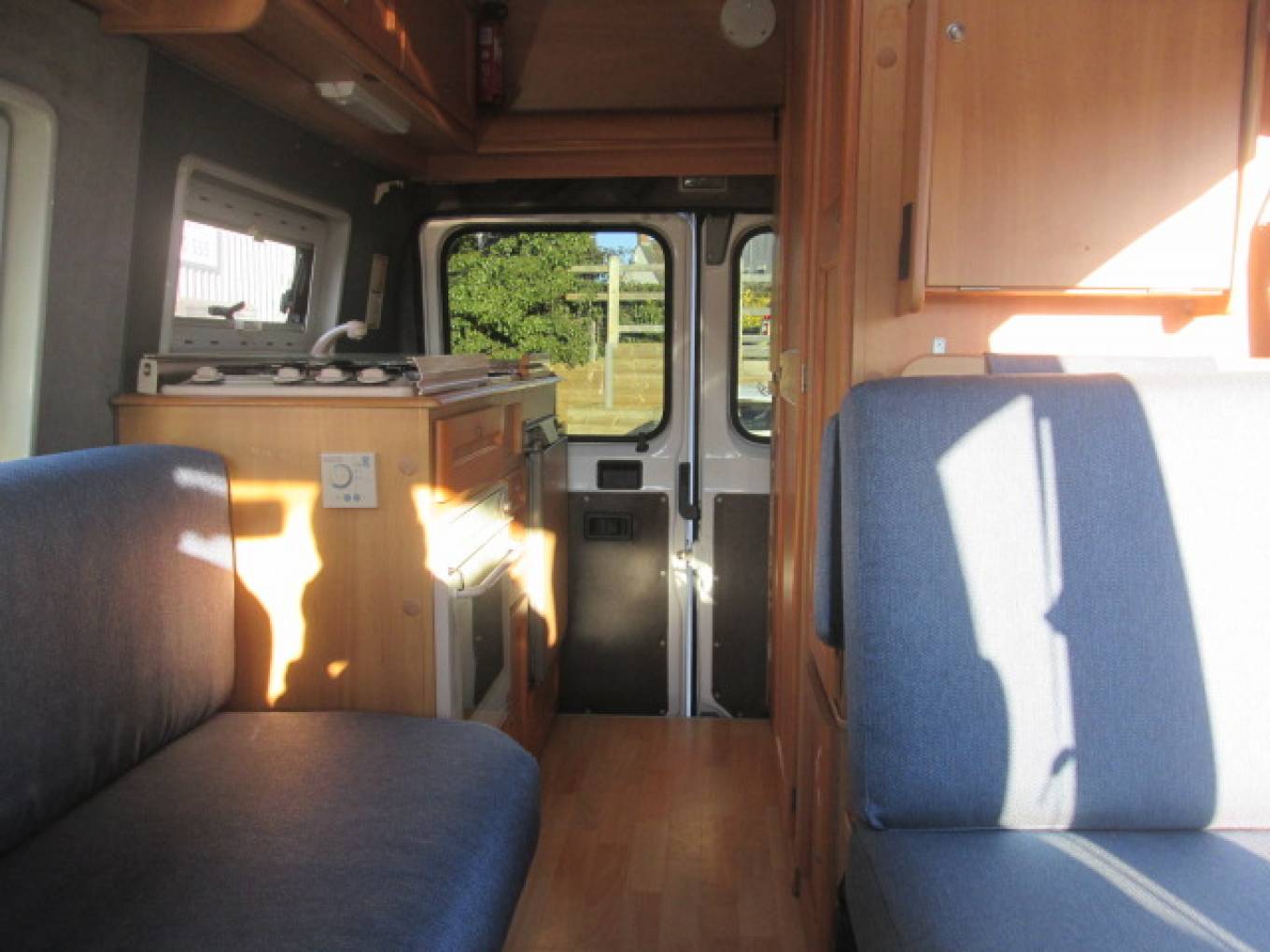 Sleeping is via the Pull Out Bench Seat providing a Large Comfortable Double or just a Single is possible from the Swivel Cab Seat combining with the Rear Seat. There is a Kitchen Area with Full Oven, Hob, Grill, Fridge Freezer, Sink plus Storage. The Washroom comes complete with Toilet, Shower and Washbasin.