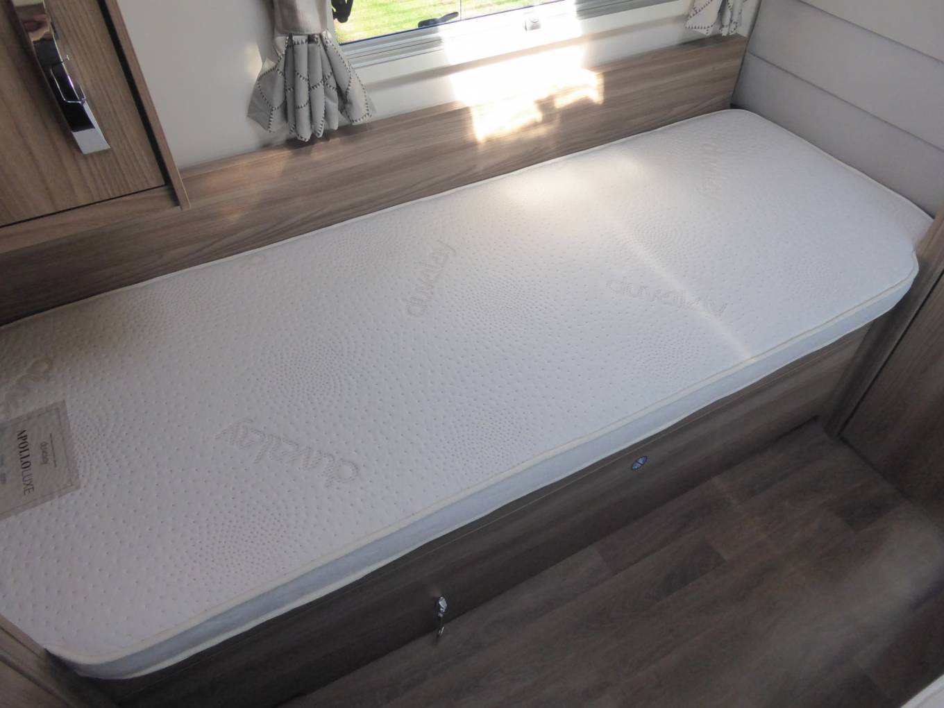 Progressing through the vehicle you reach a bed room with opposing side single beds.