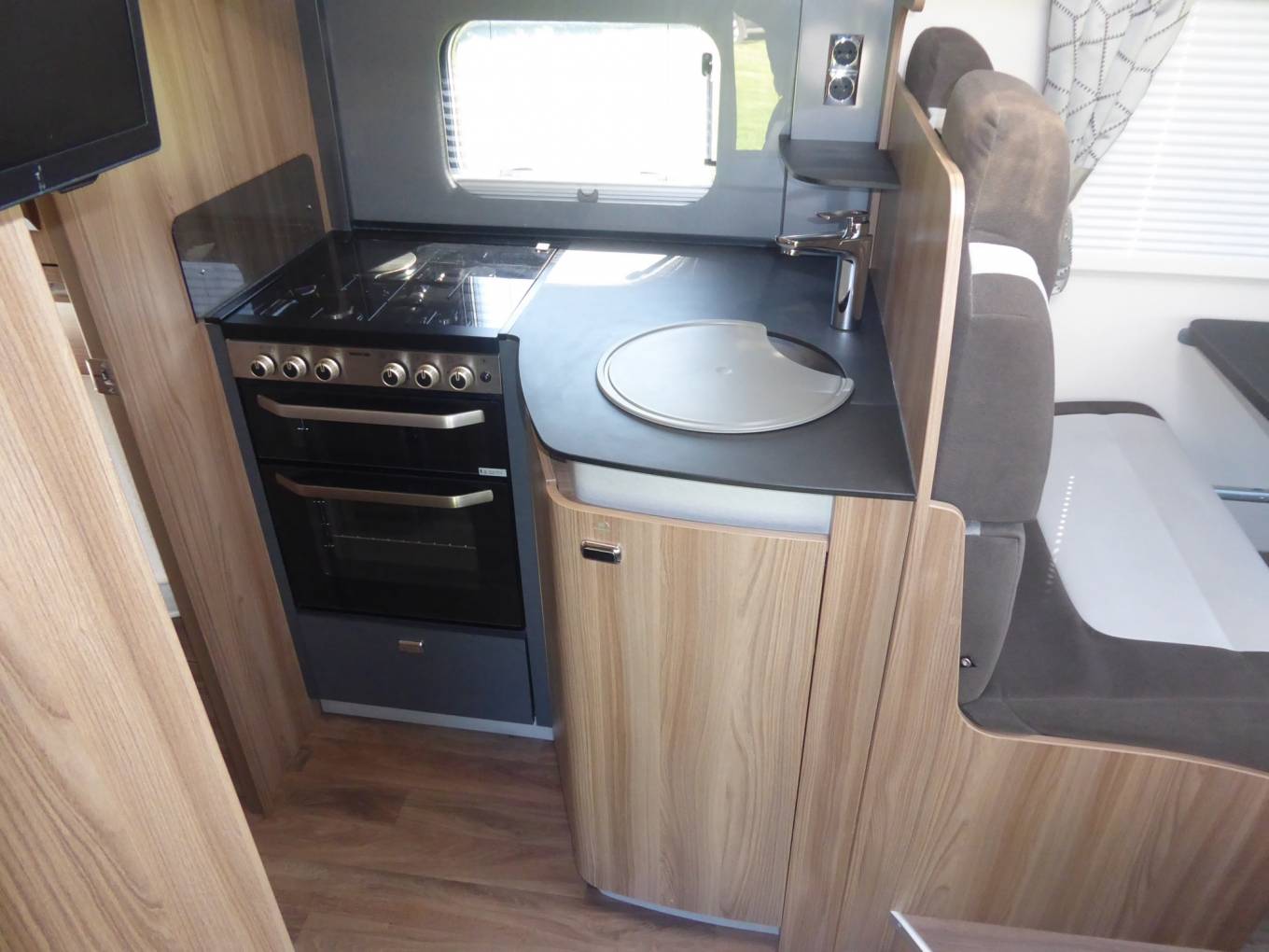 Behind the cab is nearside forward facing seat with two additional 3-point seat belts. There is a side sofa on the offside, and together, these seats can be converted into a double berth. The seating can be augmented as a leisure/dining area by the use of the swivel cab seats.