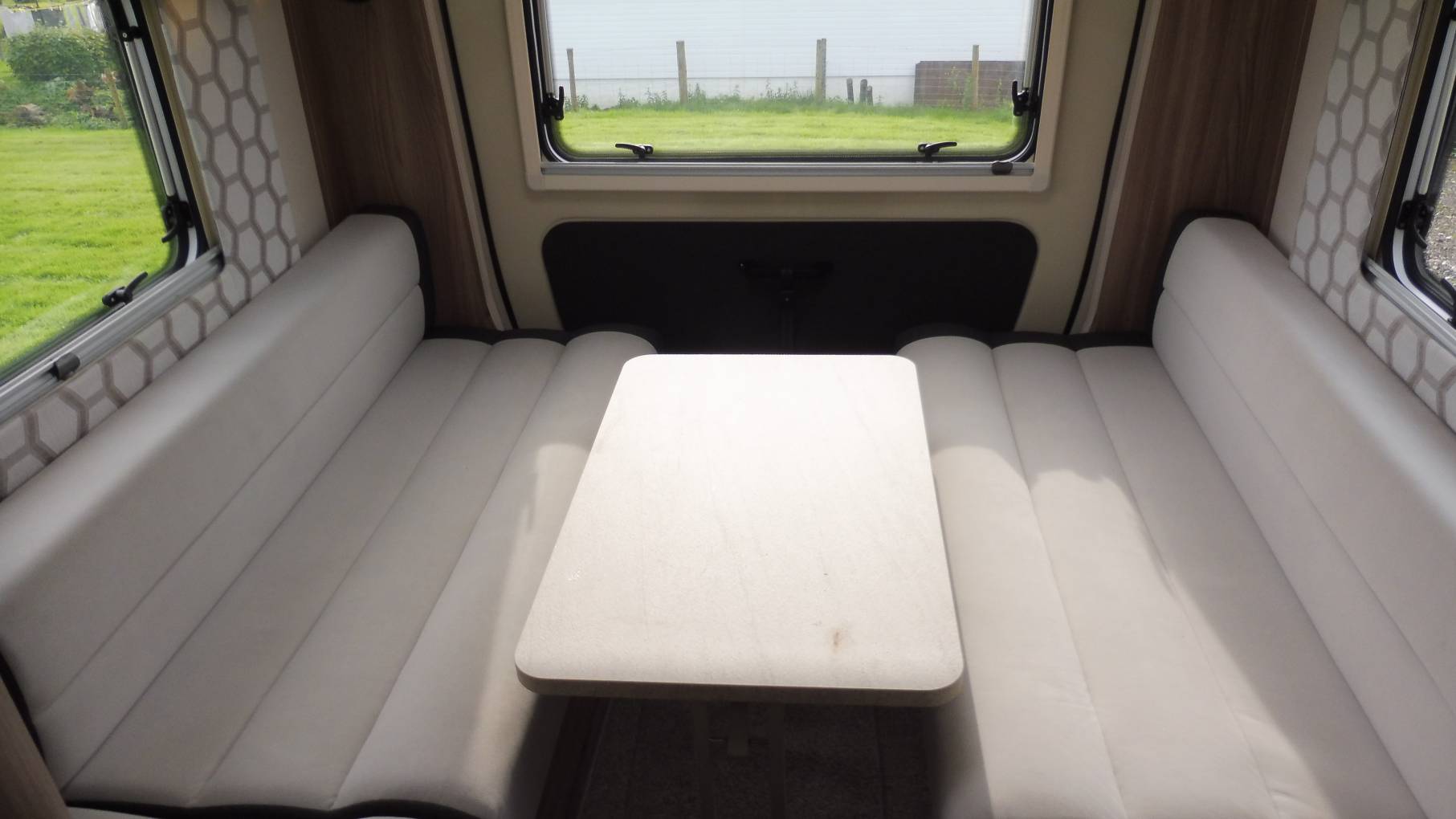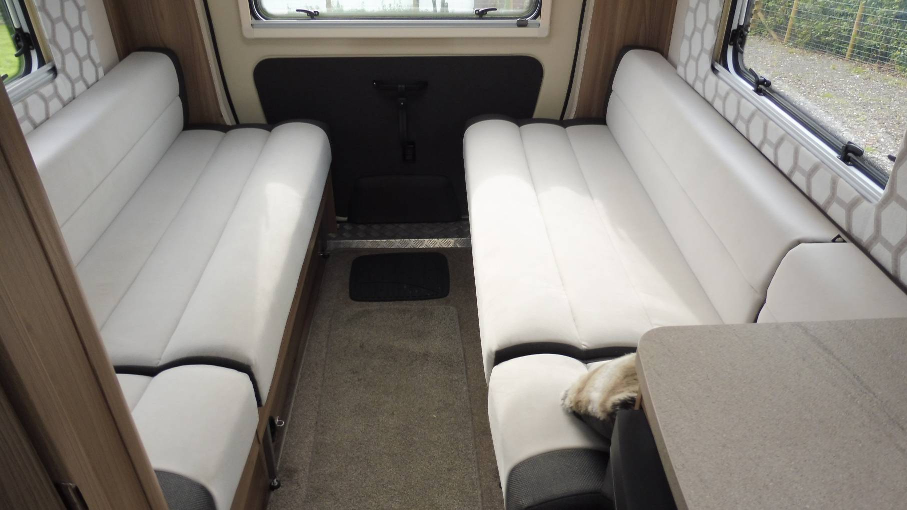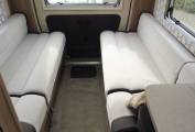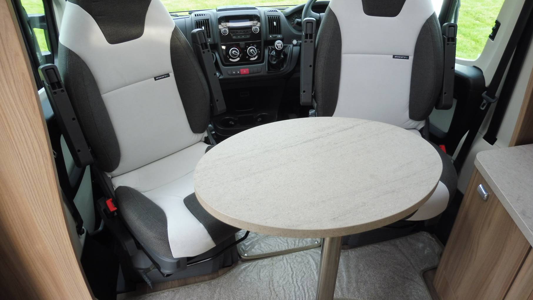 Swivel the Captain’s chairs and enter a surprisingly spacious living space. There is a removable table directly behind the cab – ideal if one of you is a early riser or late sleeper.