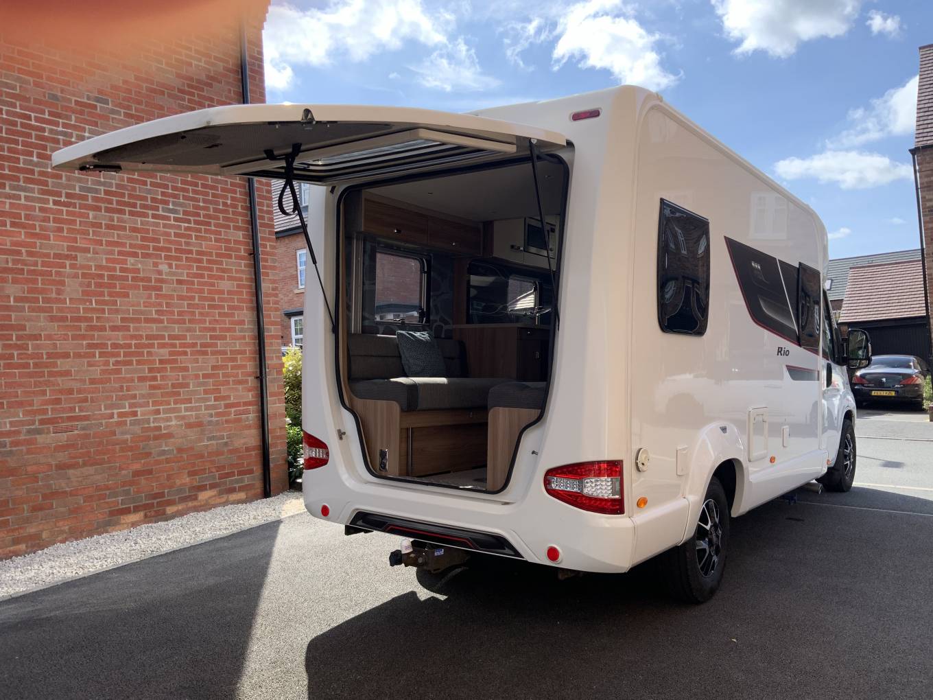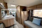 Specification on this Rio also features a 150W solar panel, winter frost protection, TV aerial and two television points with brackets, habitation step, canopy, awning, dual reverse cameras, alloy wheels, towbar, cab, air-conditioning and cruise control.