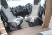 The windows and skylights all have pleated blinds and insect mesh screens which can be unclipped to be open to the elements. The forward curved panoramic skylight makes the forward lounge/dinette a spacious-feeling area. There are pleated blinds to the windscreen and cab door windows.