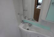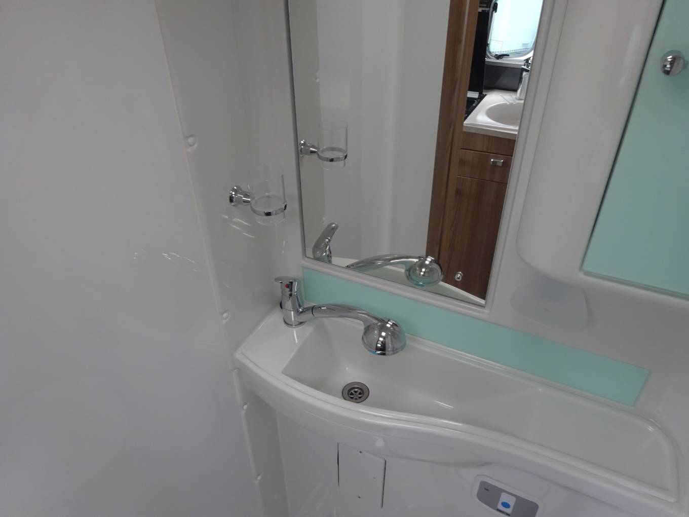 The washroom has a sink, shower and electric flush loo, and is as new.