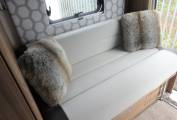 The upholstery is unmarked, as is the vehicle exterior. The internal colourways are practical and the motorhome is a pleasant space. The rear section lifts on gas struts and is simplicity itself to operate.