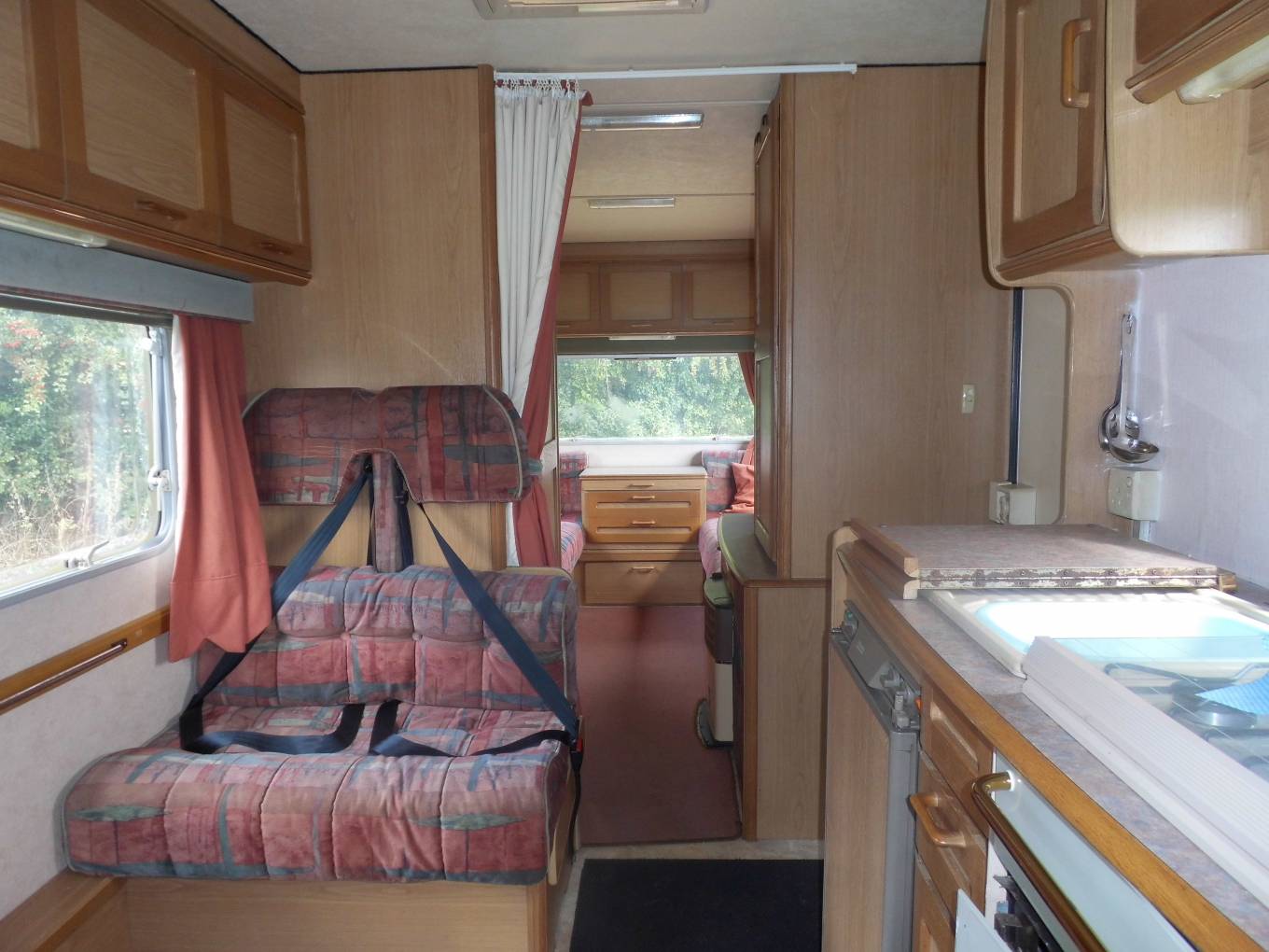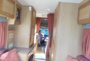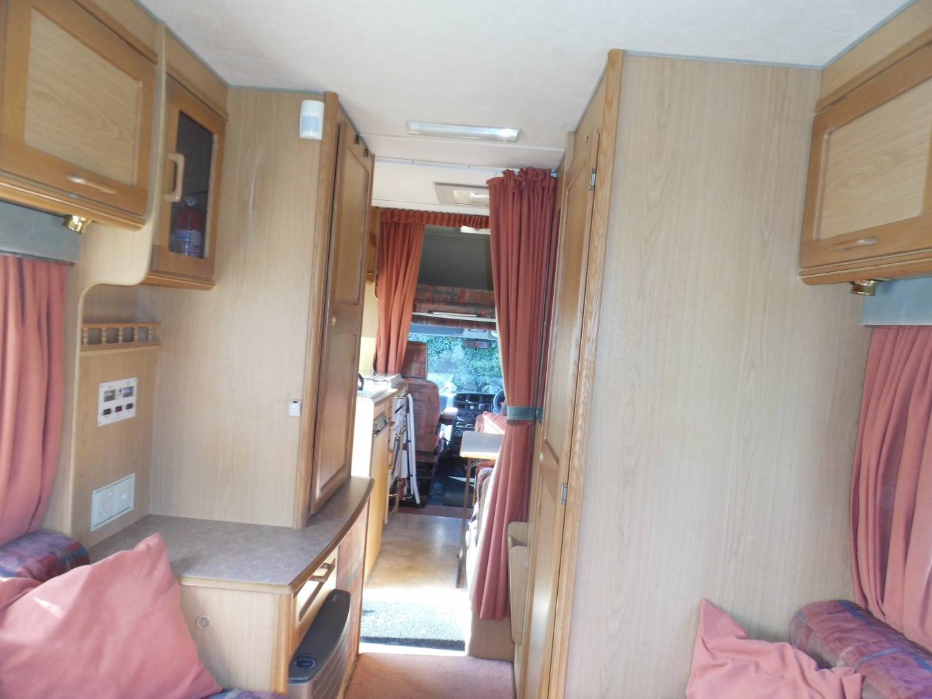 Here we have a Swift Royale 630 on a Peugeot chassis with 60,291 miles, MOT to May 2019, loads of storage space and a tidy vehicle for the year. At the back there is a three bike rack and tow bar. The nearside has a large canopy over the habitation door. Entering through the habitation door and turning right is the high level wardrobe with Carver heater underneath. Following on to the rear is the lounge with pull out table and drawers under with loads of high level storage. This area can be used as a lounge for relaxing or as two single beds. Turning round, on the right hand side is the washroom with hand basin, toilet and shower. Leading on to the kitchen and dining area there are two double seats which can be converted into a large bed. The facing seat has two 3 point seat belts. On the left hand side is the sink, fridge with freezer box and cooker with grill and four ring hob and there is plenty of high level storage. Entering the cab area there is an over-cab double bed with ladder and skylight. The driver and passenger seats both have 3 point seat belts. This is an ideal vehicle for a family of four and is a reasonably priced spacious vehicle.