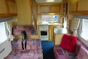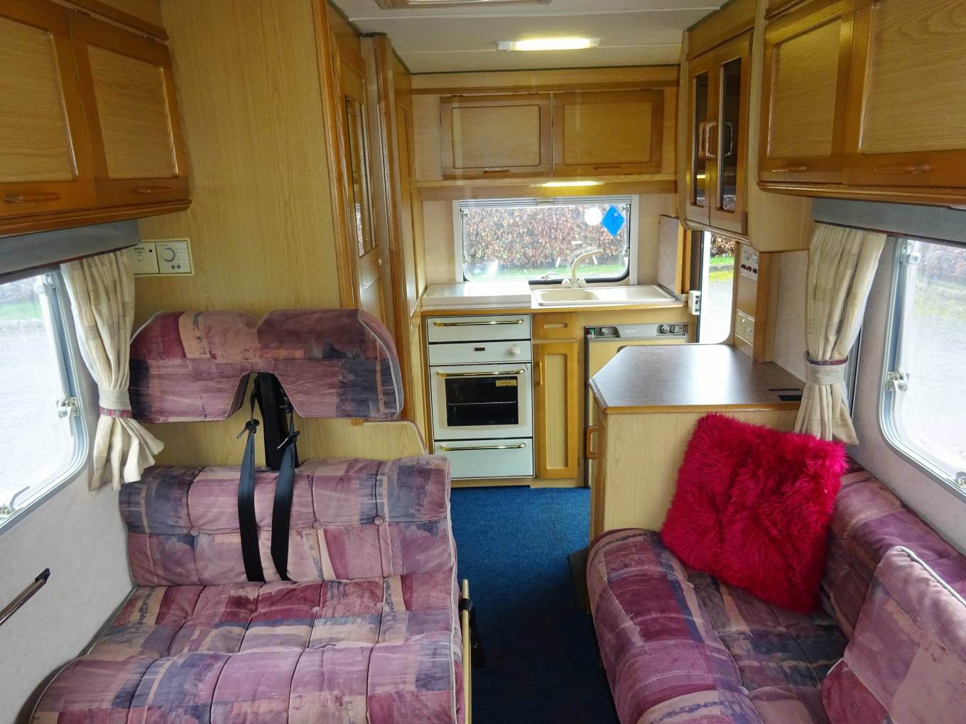There is a rear kitchen, with an Electrolux 3 way fridge, oven, grill, hob, sink and preparation area, handily located next to the door to keep cooking smells away from the living area.