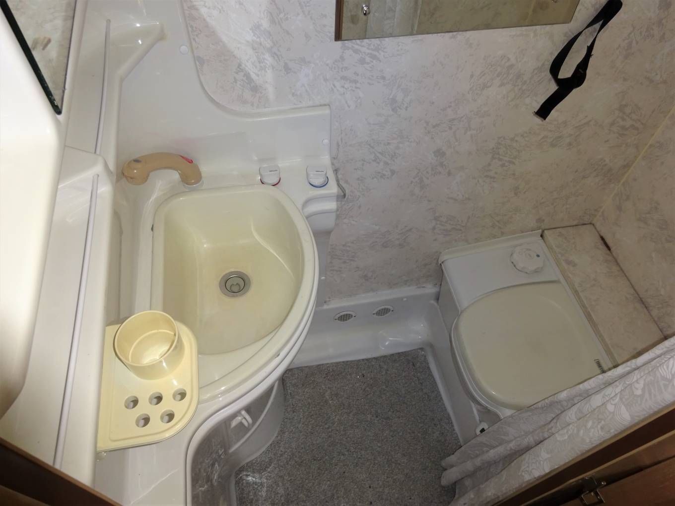 This vehicle benefits from an overcab bed and a very spacious and comfortable lounge dinette that converts into a large bed within the body of the living space.