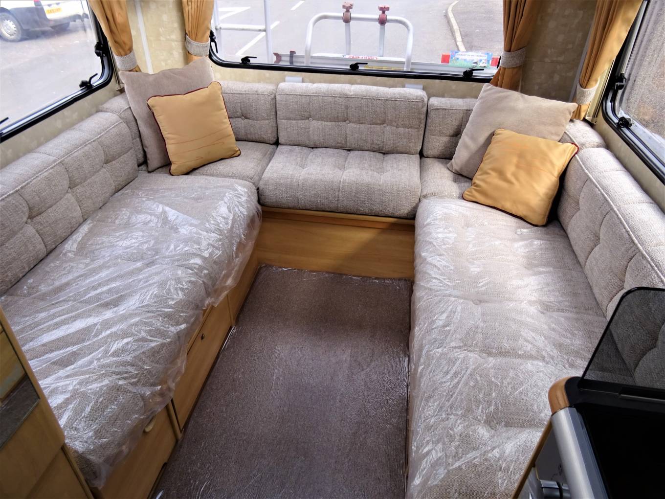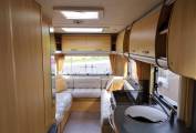 The stand out feature of this Motorhome is the large u shaped lounge area and with the stowaway table it creates a fantastic, well lit, area to dine and relax in, owing to the light from each of the windows on the three sides and skylight above.