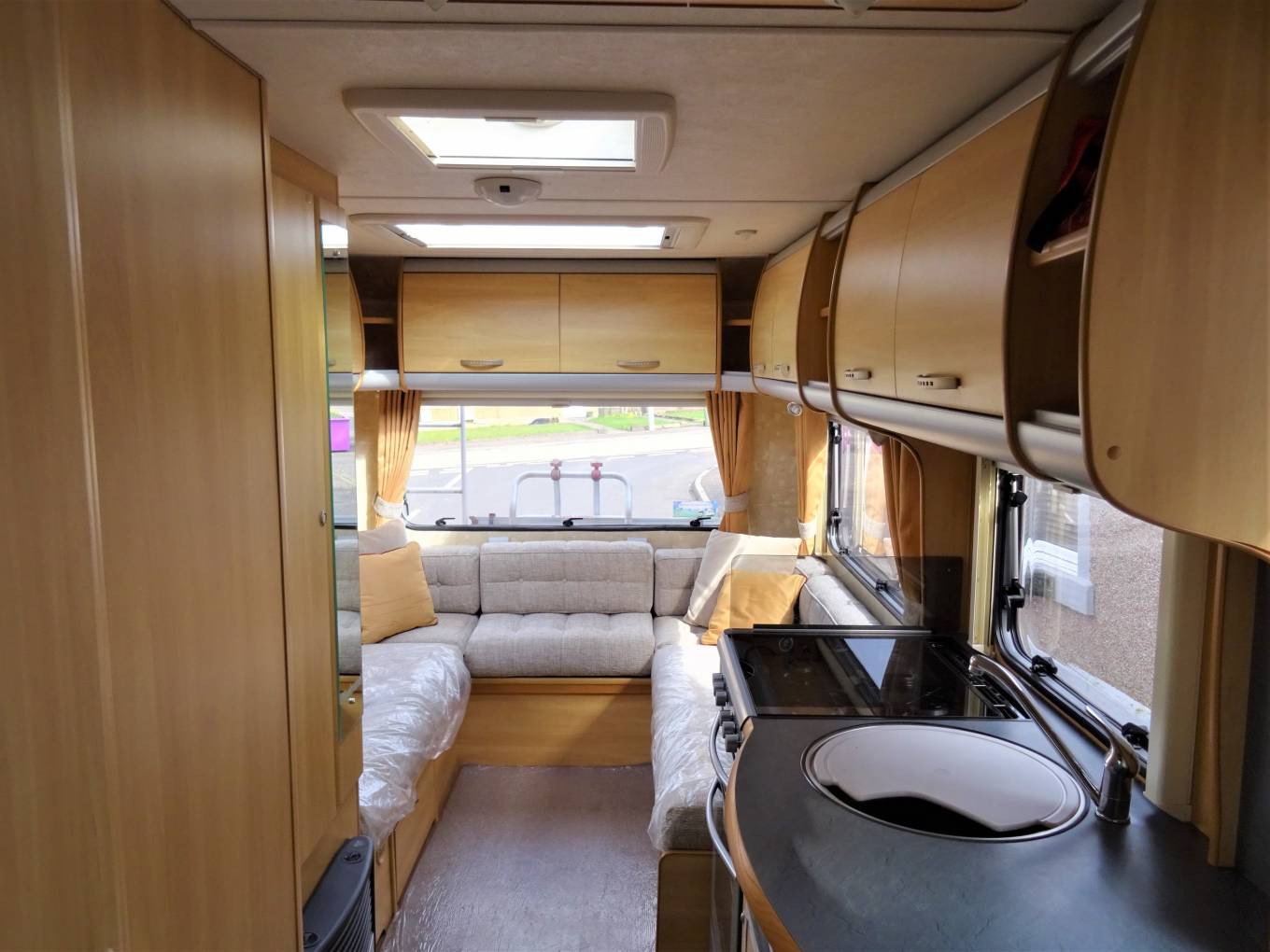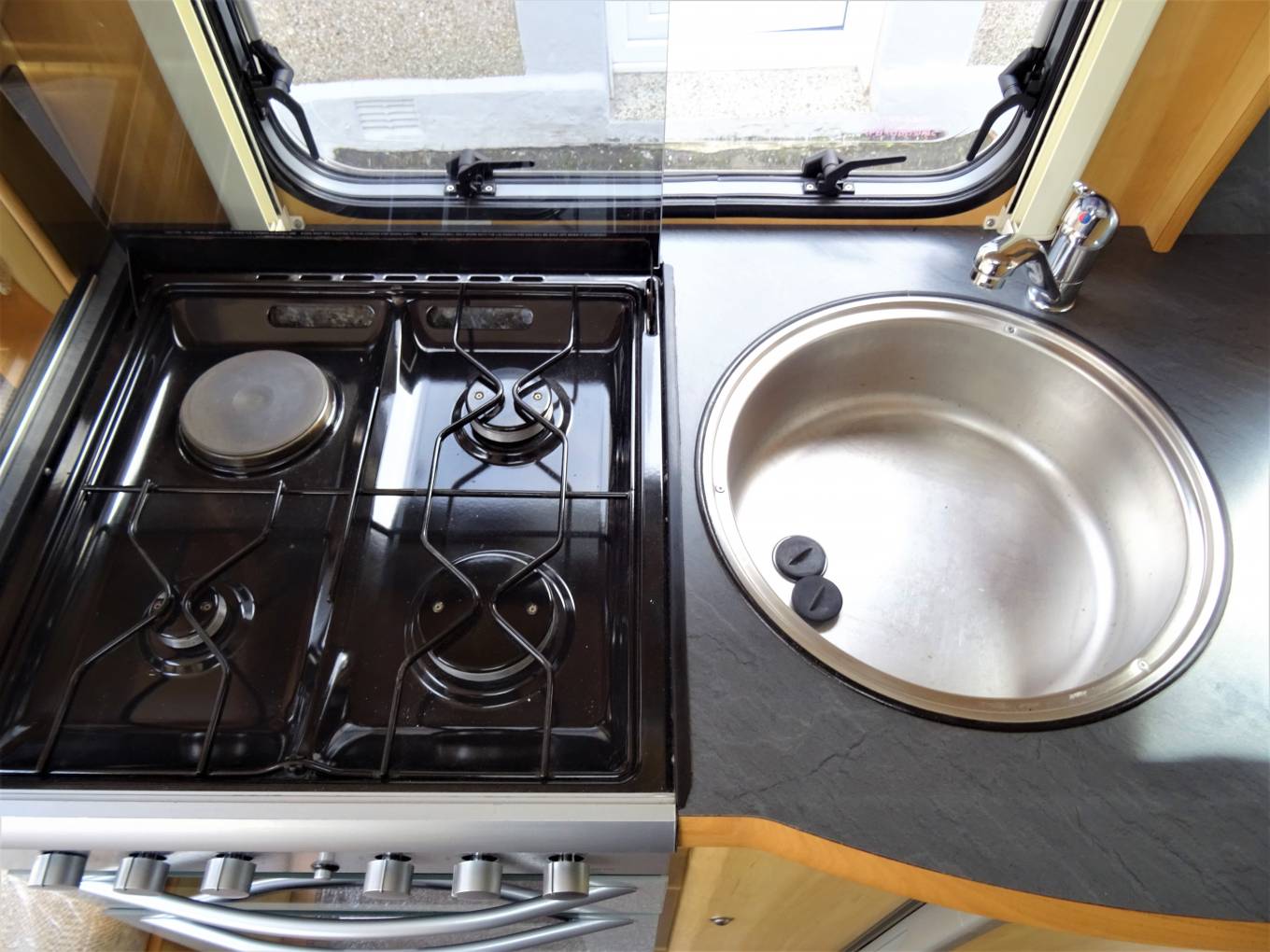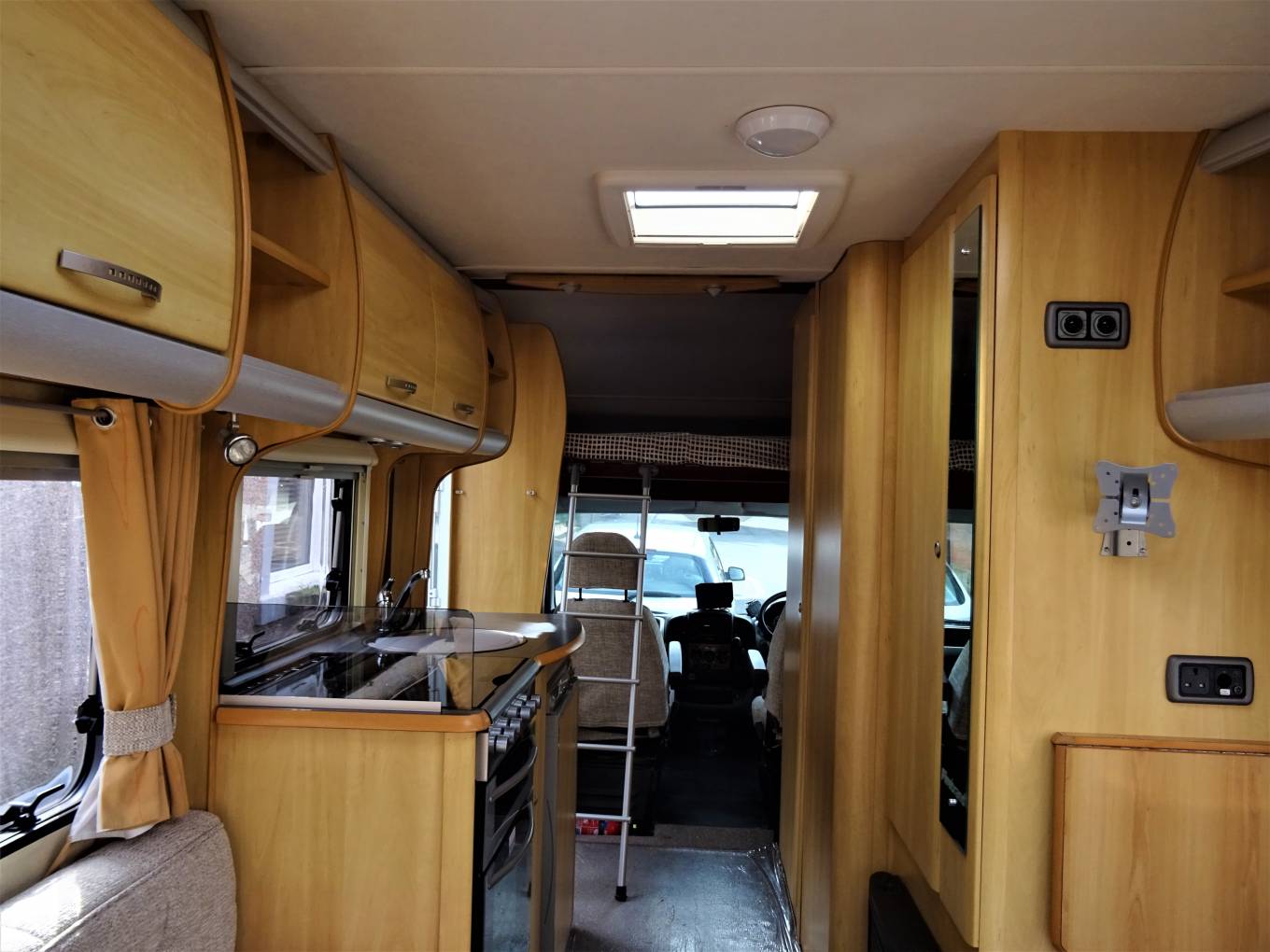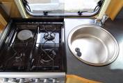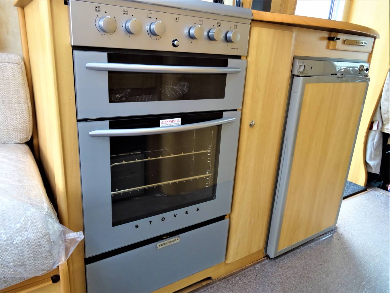 As you enter the Motorhome you'll find a well equipped kitchen area that has an oven, grill, dual fuel hob, fridge/freezer, sink with mixer tap and a worktop for food preparation. Also mid-ship we have the washroom with toilet, shower and sink with mixer tap.