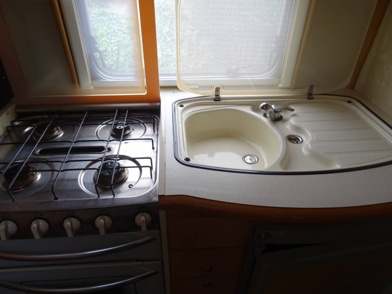 full oven, four-burner hob and good-sized sink and draining area with a large