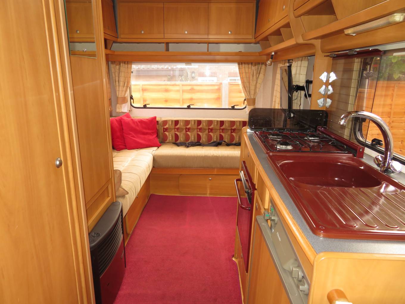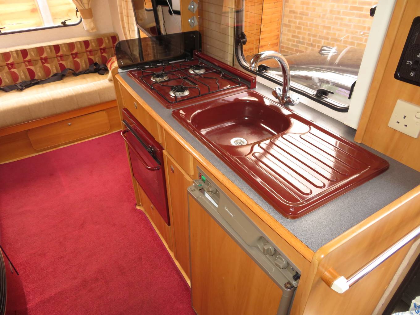 The Swift Sundance comes with a well equipped kitchen which includes oven, grill, hob with 3 gas burners, sink with mixer tap and drainer and 3-way fridge with ice compartment.