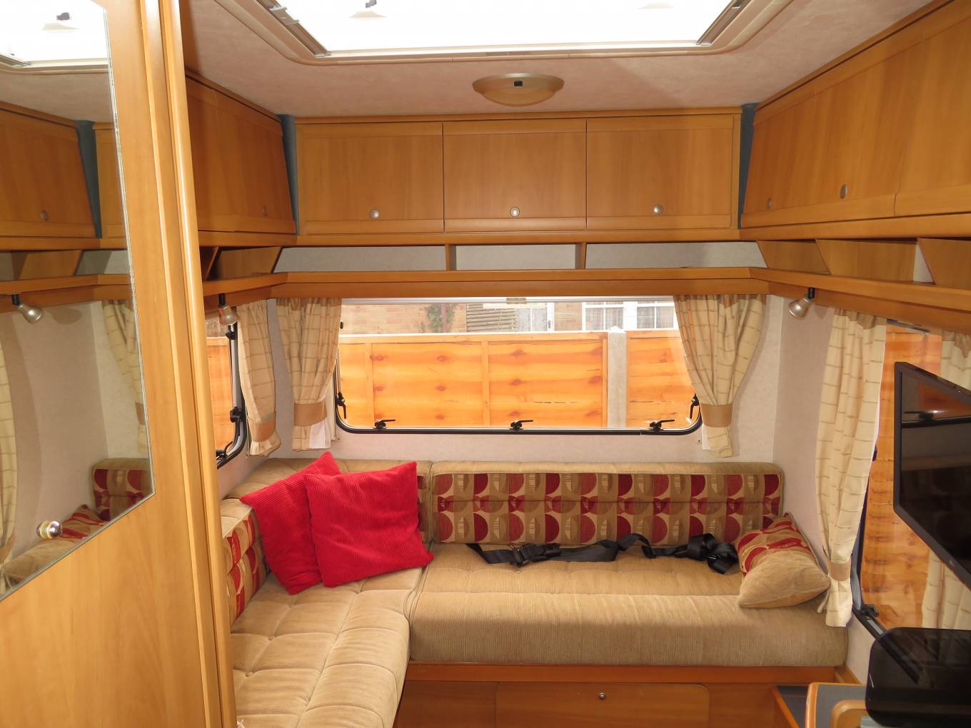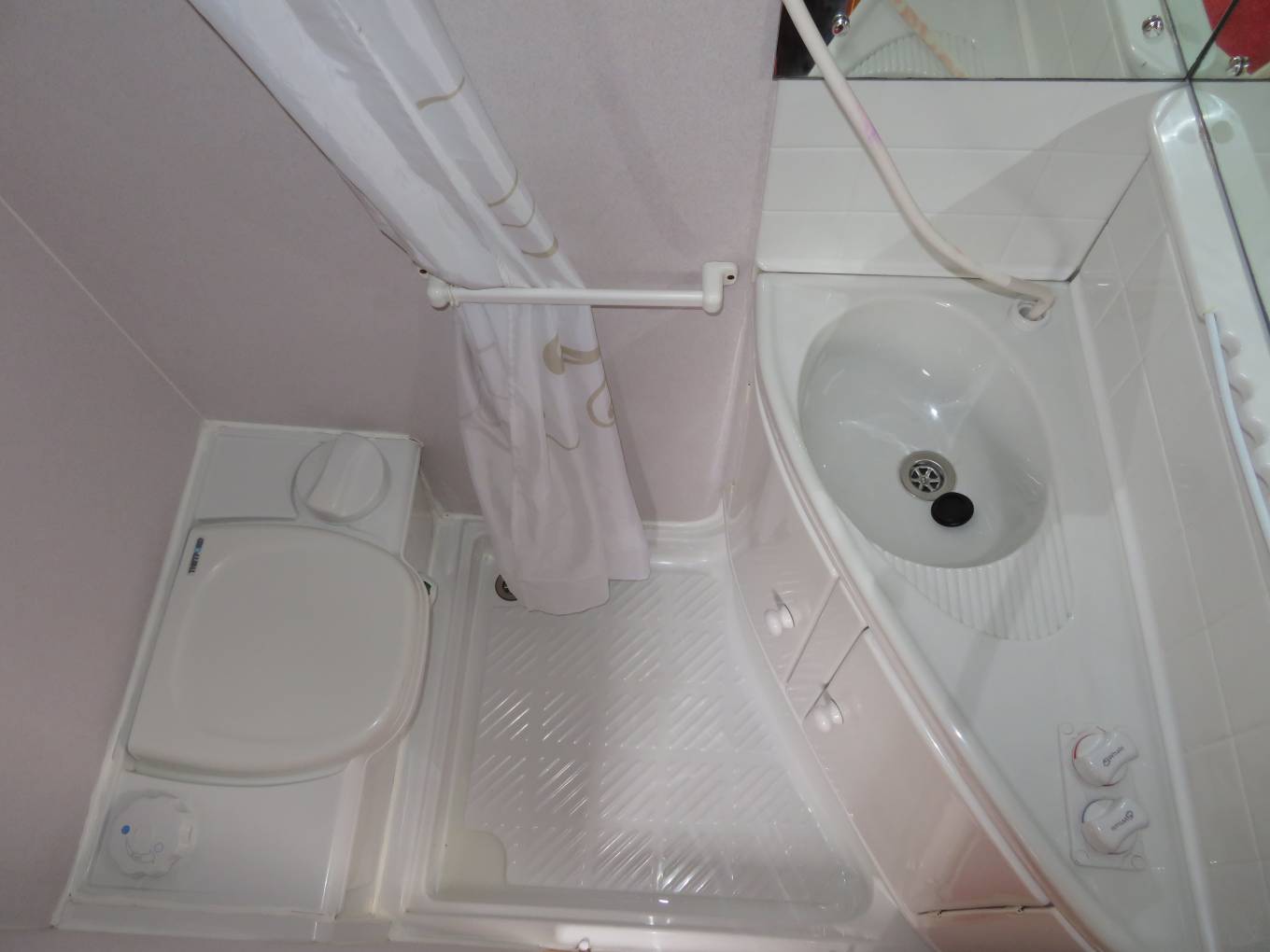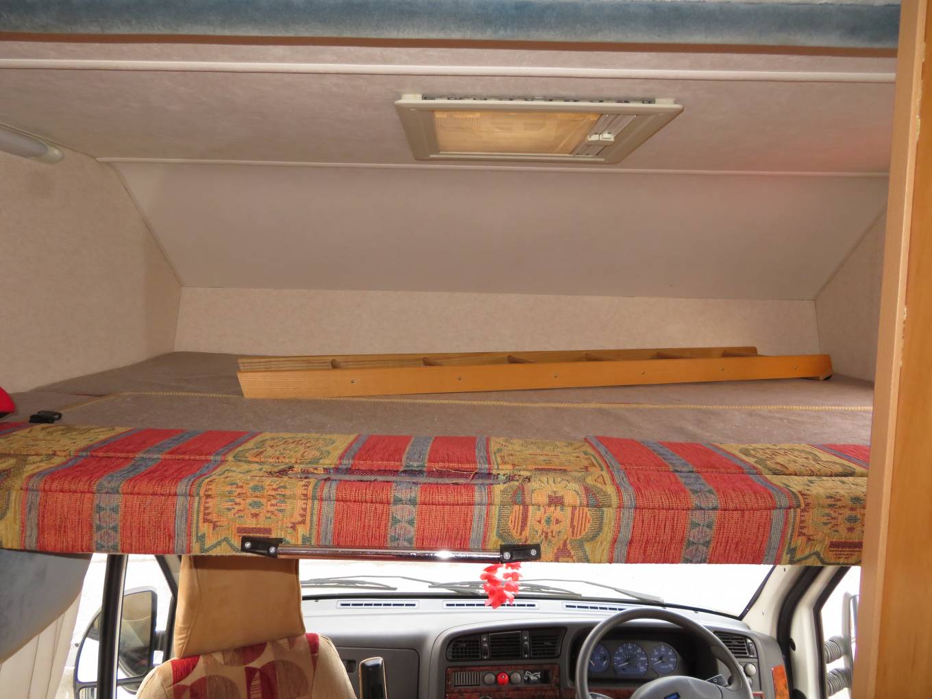 The motorhome is extremely comfortable for sleeping in. The rear lounge sofas make up a generous double bed and there is a good sized over the cab double for the more adventurous, which can also be used for additional storage if not required for sleeping. The Sundance also comes with decent washroom with Thetford flush cassette toilet, sink with cabinet and pull our shower to keep you nice and fresh. Additional items with the motorhome include the wind out awning, tow bar and TV.
