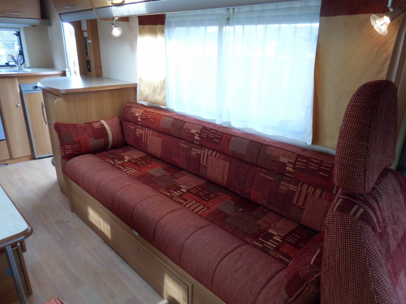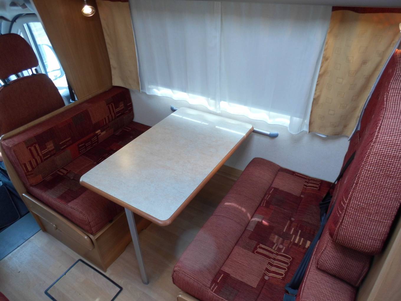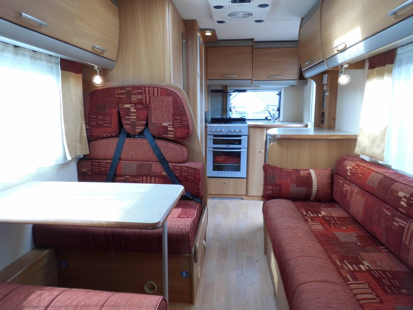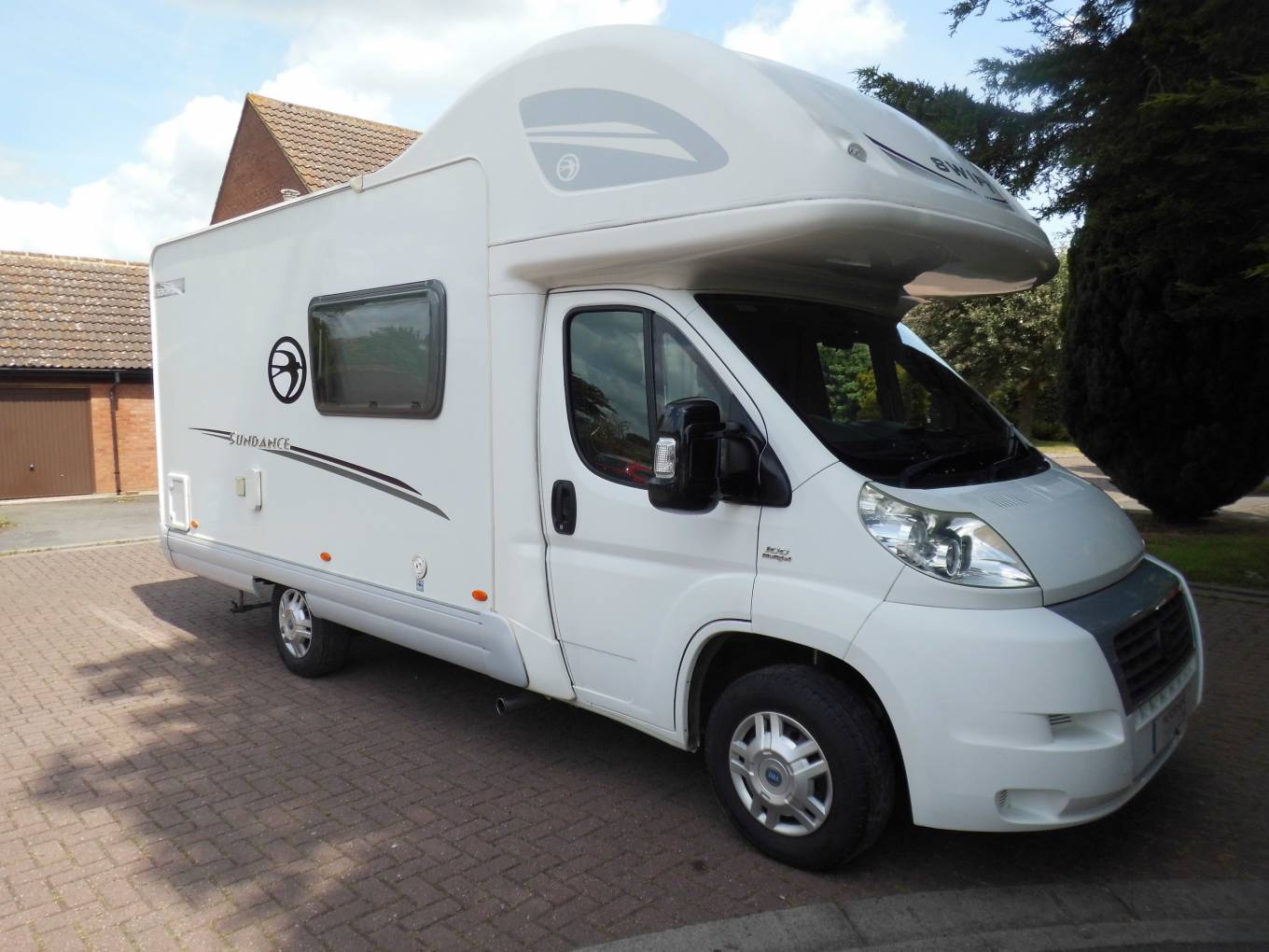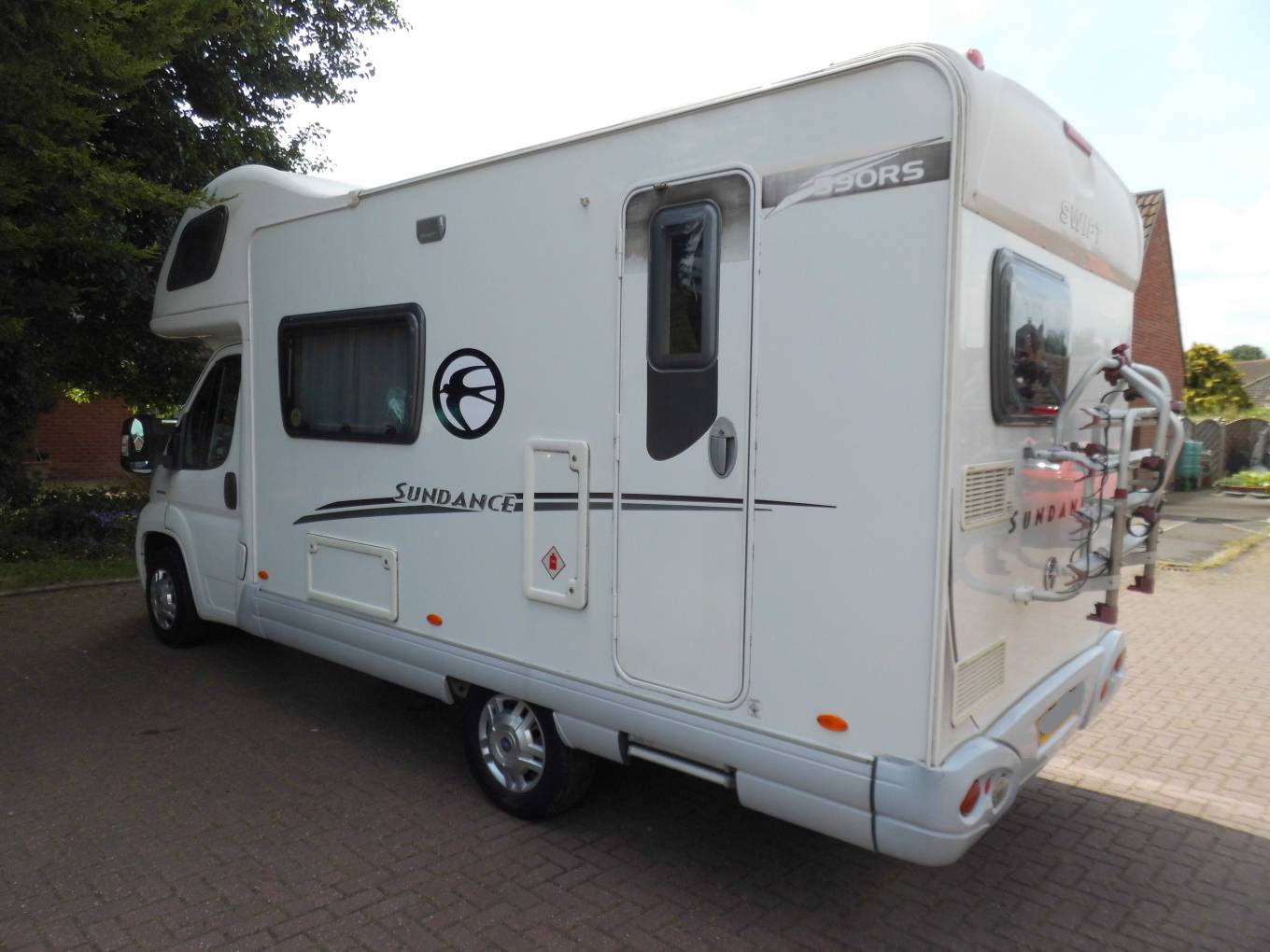 MotorhomeDepot.com present this AIR CONDITIONED 2007 Swift Sundance 590RS based on a Fiat Ducato cab and MWB chassis with power coming from the Fiat 2.2 100 Multi-jet diesel engine linked to the 5 speed manual gearbox. Starting with the rear end kitchen layout which comprises of oven, grill, hob with three gas burners and one electric ring, a circular stainless steel sink with mixer tap,masses of worktop surface, a Dometic three way combined fridge freezer and plenty of storage. Adjacent is the washroom with Thetford cassette toilet, shower with swing out divider, wash basin and vanity mirror and further toiletry cupboard space. The centre dinette, easily converts into a double bed and comprises of seating for five when using the long side settee that also converts to a single bed. This is a 5 berth motorhome with 4 travel belts, the main sleeping area is the generous over-cab double which cantilevers up on gas struts to give ease of access between cab and habitation area. Comfortable habitation temperature control is managed by Truma Ultra-heat blown air system and an aftermarket Waeco Cool-Air air conditioning unit situated above the main habitation area. Other features include portable Topray 60W solar panel cottage kit, gas bottles, mains hook up cable, 4 bike rear cycle rack, Status TV aerial and a Sunncamp freestanding three metre square dayroom. Service, full habcheck and MOT completed in February 2018. Genuine reason for sale. Please contact Mike on 01865 684991 or 07983 283285 for more information and the extended photo file.