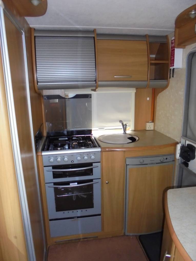 by the habitation door is a kitchen comprising a hob with three gas burners and