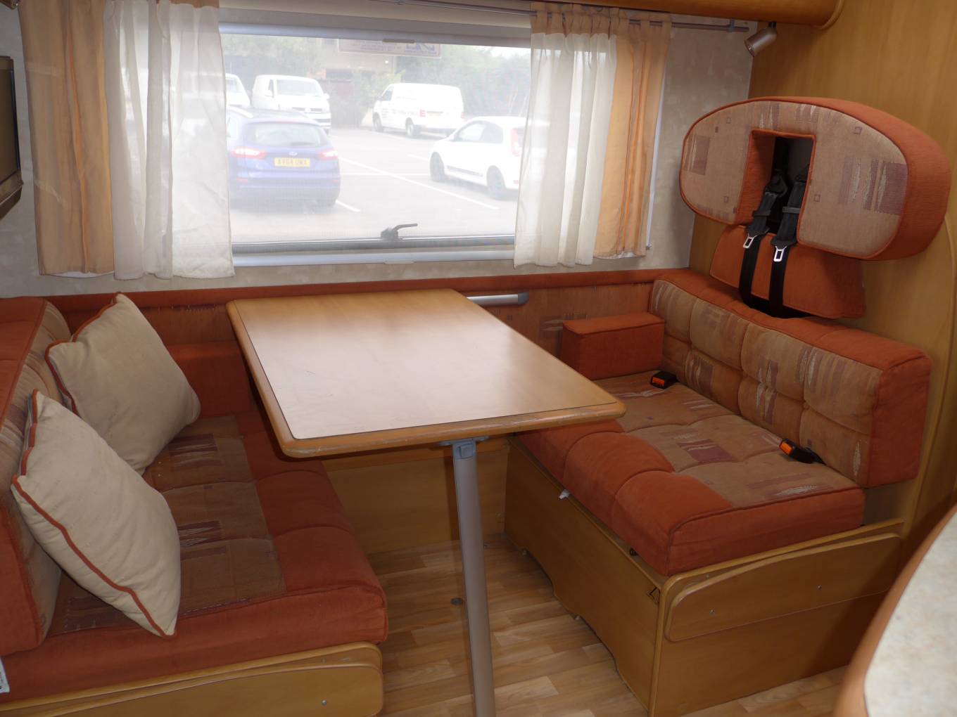Fixed Rear double Bed, centre dinette and over cab bed. 3 Large double beds and 4 x 3 Point Seat belts. Ideal Family Motorhome or spacious living accommodation for couples Based on the 2.8 TD Fiat Ducato Chassis.