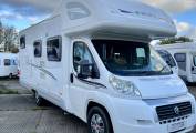 Motorhome Depot are proud to present this Swift Sundance 630 G. This 4 berth, 4 seatbelt coach-built motorhome comes on a Fiat Ducato chassis and has a 2.3 litre Diesel engine with 6 speed manual gearbox, electric step, electric windows, Bluetooth radio, LPG tank and Full recent Habitation Check. Starting at the rear, we have a large and comfortable transverse over garage bed with overhead storage lockers, moving forward we have washroom that includes Thetford toilet, vanity handwash basin with shower tap. Into the well equipped kitchen is a 3 burner gas hob with an additional electric ring, grill, oven, sink and a 3 way fridge. In the front is a good-sized dinette area with 2 additional travelling seats and a side bench, lots of storage above and below the seats, the drivers and passenger seats also swivel to create a family sized dinette, finally we have a good sized over cab bed that provides the final of the 4 berths. Lovely family motorhome with large rear Garage.
