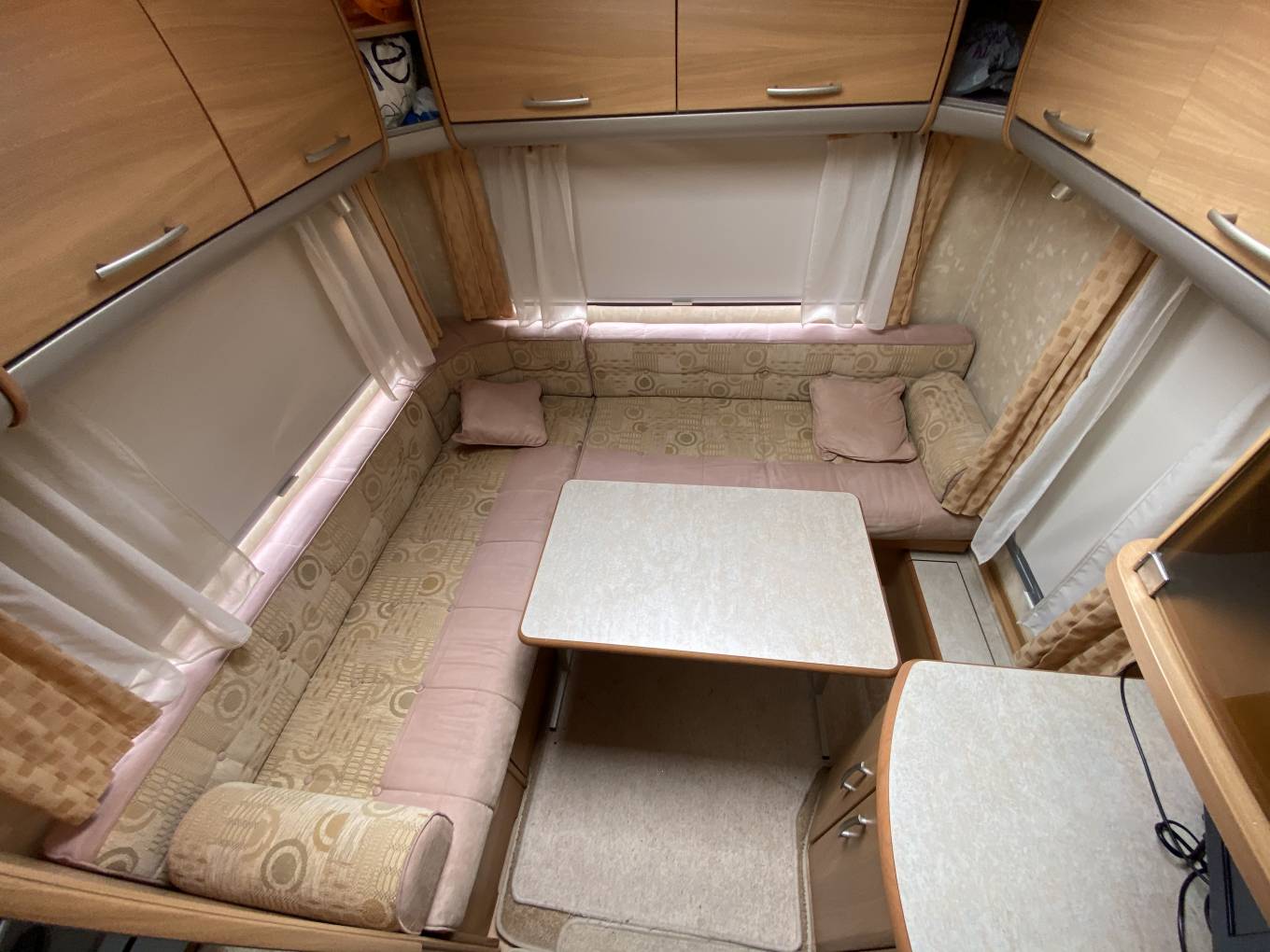 A Foldaway dining table fits here and at night-time a large double bed can made up.