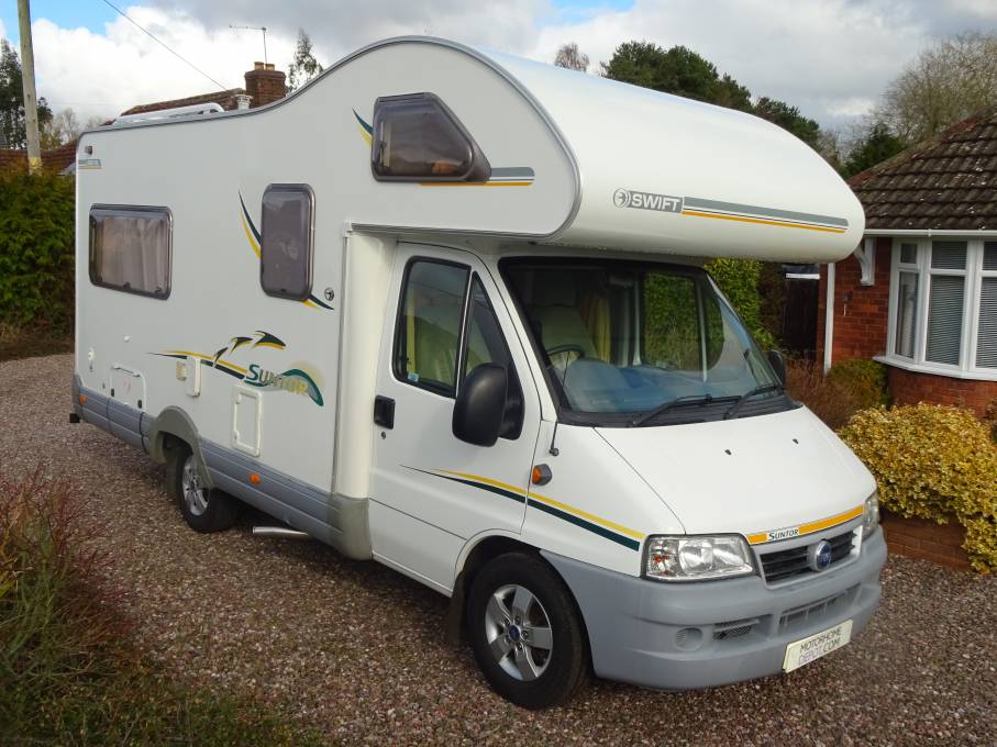 Motorhome Depot Bradford have in stock the Swift Suntor 590 RL, 2004, Coach-Built on the 3500KG Fiat Ducato Chassis, 2.3 Litre Diesel Engine, 5 Speed Manual Gearbox, 2 Belts, 4 Berth, Cam Belt changed 2022, 1 owner from new, First registered on 02/07/2004, MOT until 02/07/2023. This motorhome has travelled 67,612 miles.