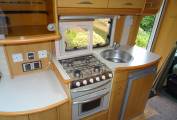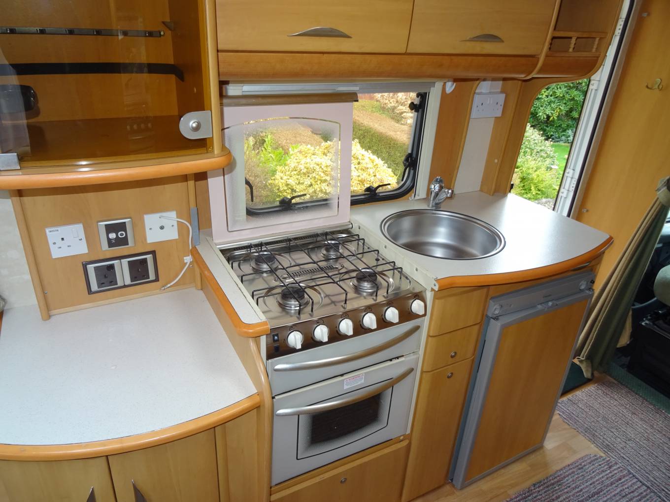 Passing through the centre to the kitchen area that comes equipped with new been used separate oven and grill, 3 way fridge and freezer, 4 gas ring hob, sink.