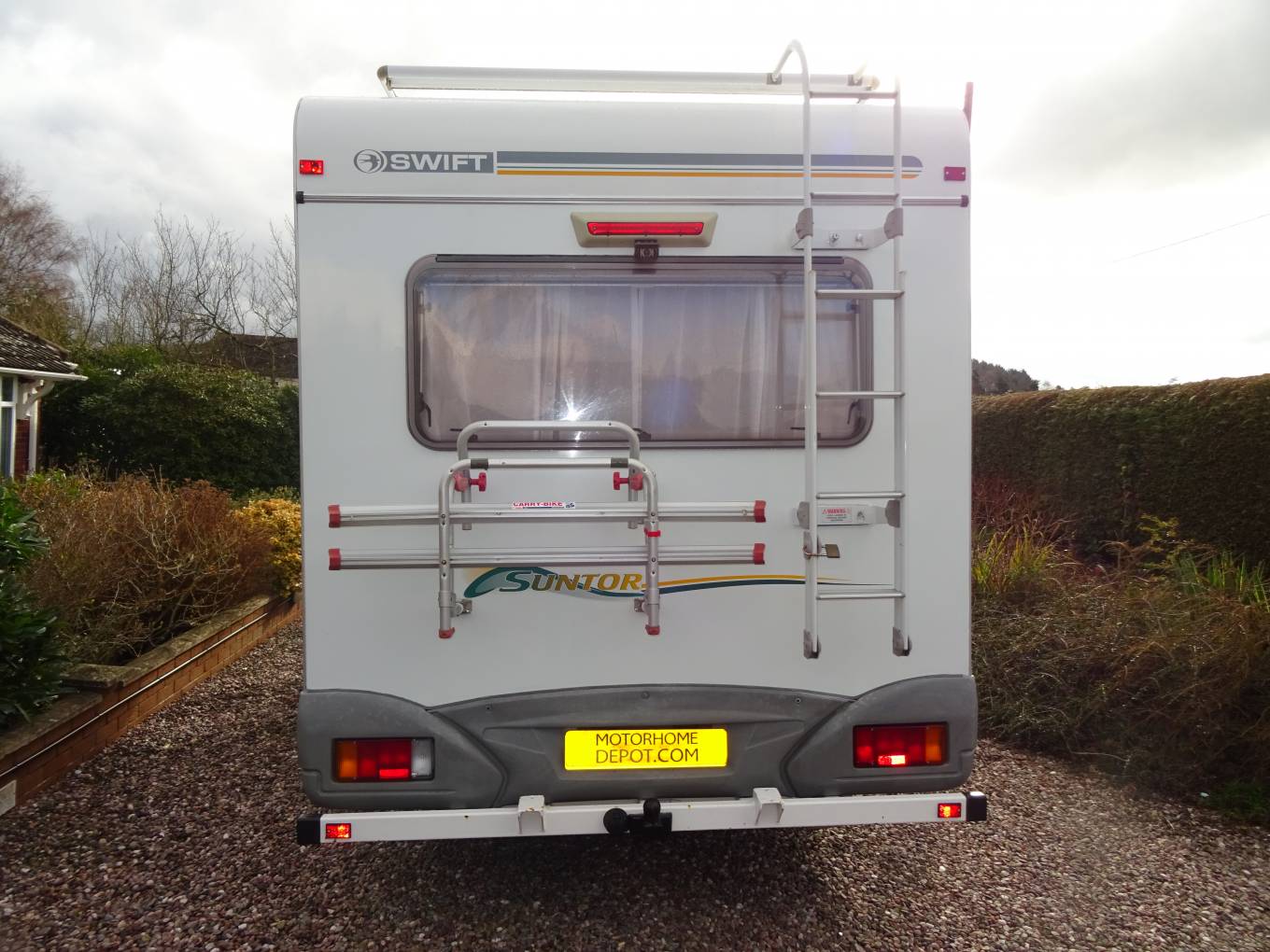 This Swift Suntor 590 RL is in great condition for a vehicle of this age with 1 owner from new, has full documentation, Full Service History, Cam Belt and Fuel Filter Changed in 2022, This motorhome has everything you need to get your motorhome journey started, with some additional features including Unused original carpets, new unused over cab mattress, Tv Aerial and Booster, 120 Watt Solar Panel, Reverse Camera, Fiat Alloy Wheels, 12/240V Mains Inverter and Sockets, Rear Air Suspension, Internal Cab Security, Fiamma Bike Rack, Tow Bar and Electrics, Roof Rails and Ladder, Rear Stabiliser Legs, Electric Step, Internal LED Lighting, Fiamma F45 Wind-out Canopy Awning, External BBQ point, External TV Aerial, Blown Air Heating, and plenty of Storage throughout,