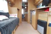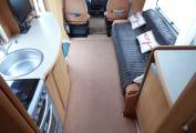 Opposite is the lounge which is both spacious and light thanks to the large rooflight. This is a lovely spot to relax in and on the driver's side is a long sofa. Add in the freestanding dining table and you have a fantastic area to enjoy your meal times. At night the sofa makes in to a double bed.The other 2 sleeping berths are above the cab.