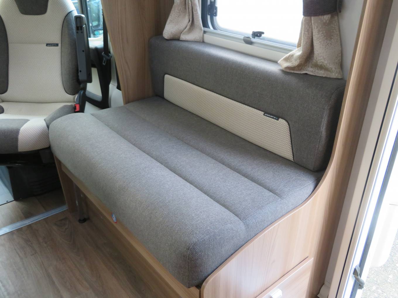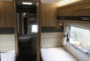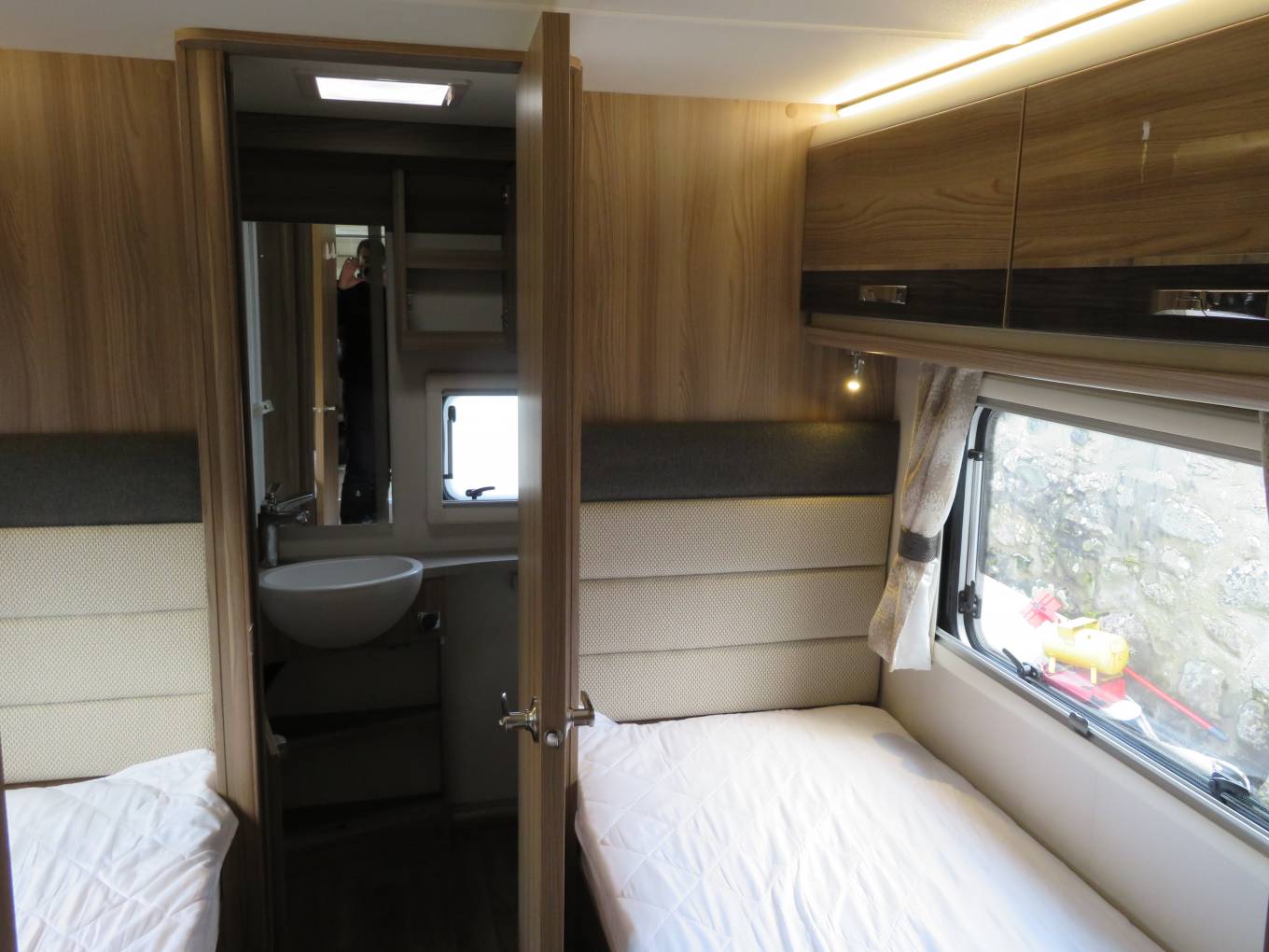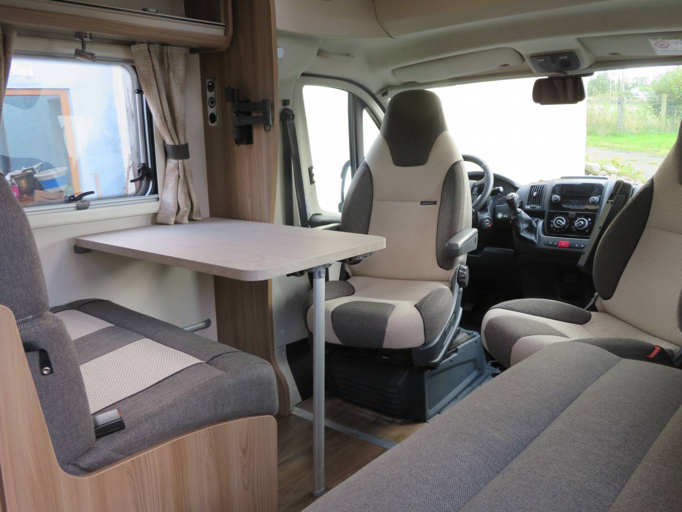 This 774 has the Twin Bed Lay out so at the rear you have a luxury bathroom with separate Shower vanity unit, sink and large cupboard with lovely lighting. Moving forward to the Bedroom area with its twin beds with lots of storage both below and in the lockers above you also have the habitation aircon ideal when aboard. You then have the Kitchen area with full oven, Hob inc hotplate, Microwave, Full length fridge and lots of storage and work space. Finally at the front you have a lovely dinette area with front facing traveling seats and a nice sofa to the side, This is a great area to relax in especially when the two front seats a spun around.