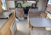 This lovely spacious well looked after Talbot Express 4 berth motor home is very neat and compact and well laid out. As you walk through the door you have the dining area directly in front of you which converts into a double bed. The washroom consists of a toilet, washbasin and shower. To the front of the motor home there is a double above cab bed with a window. Moving to the middle there is a nice kitchen area with a three ring hob, fridge with a small freezer compartment,sink and a good amount of storage. There are 4 belted seats, curtains. 2 sets of keys.