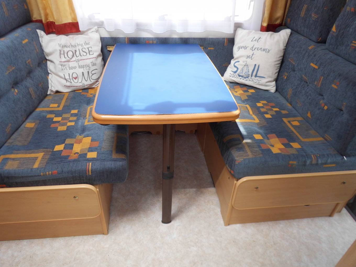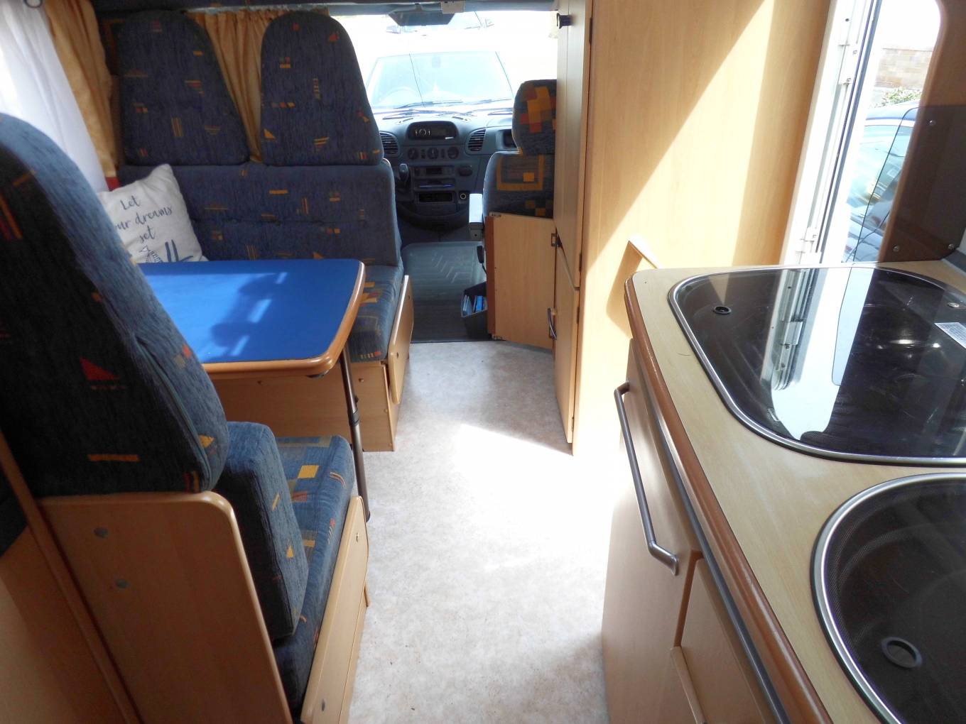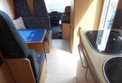 The centrally located dinette is a great place to enjoy meal times and drinks. The dining table fixes on to the side rail and this can easily be removed if required to give an open lounge feel. There are forward and rear facing sofas both of which have 2 seat belts so 4 people cn travel safely in the rear. A large skylight above the dinette throws in additional daylight.