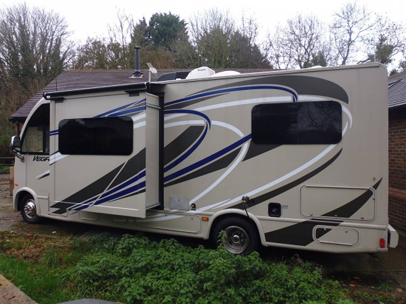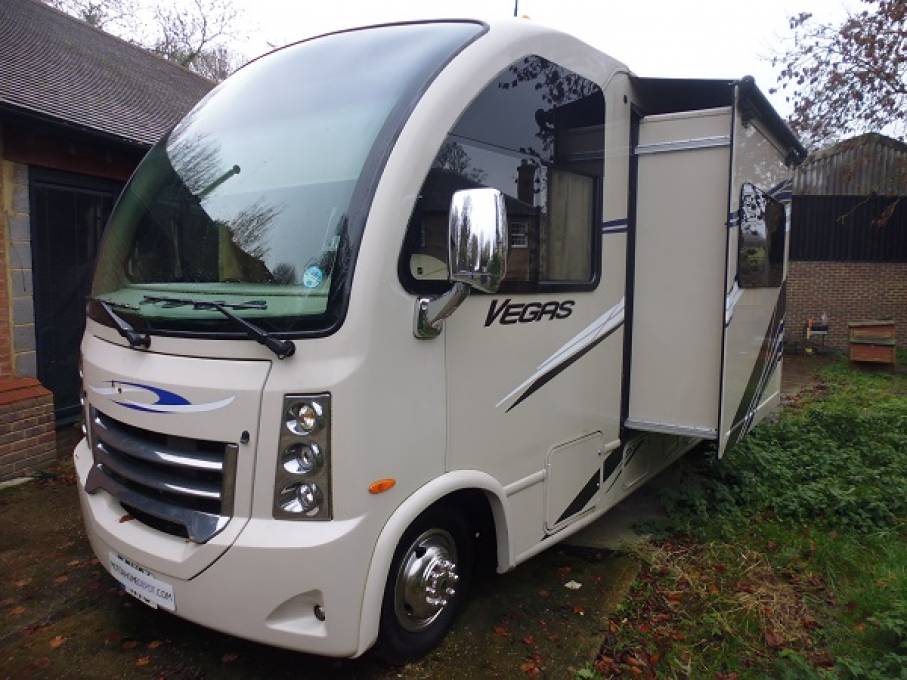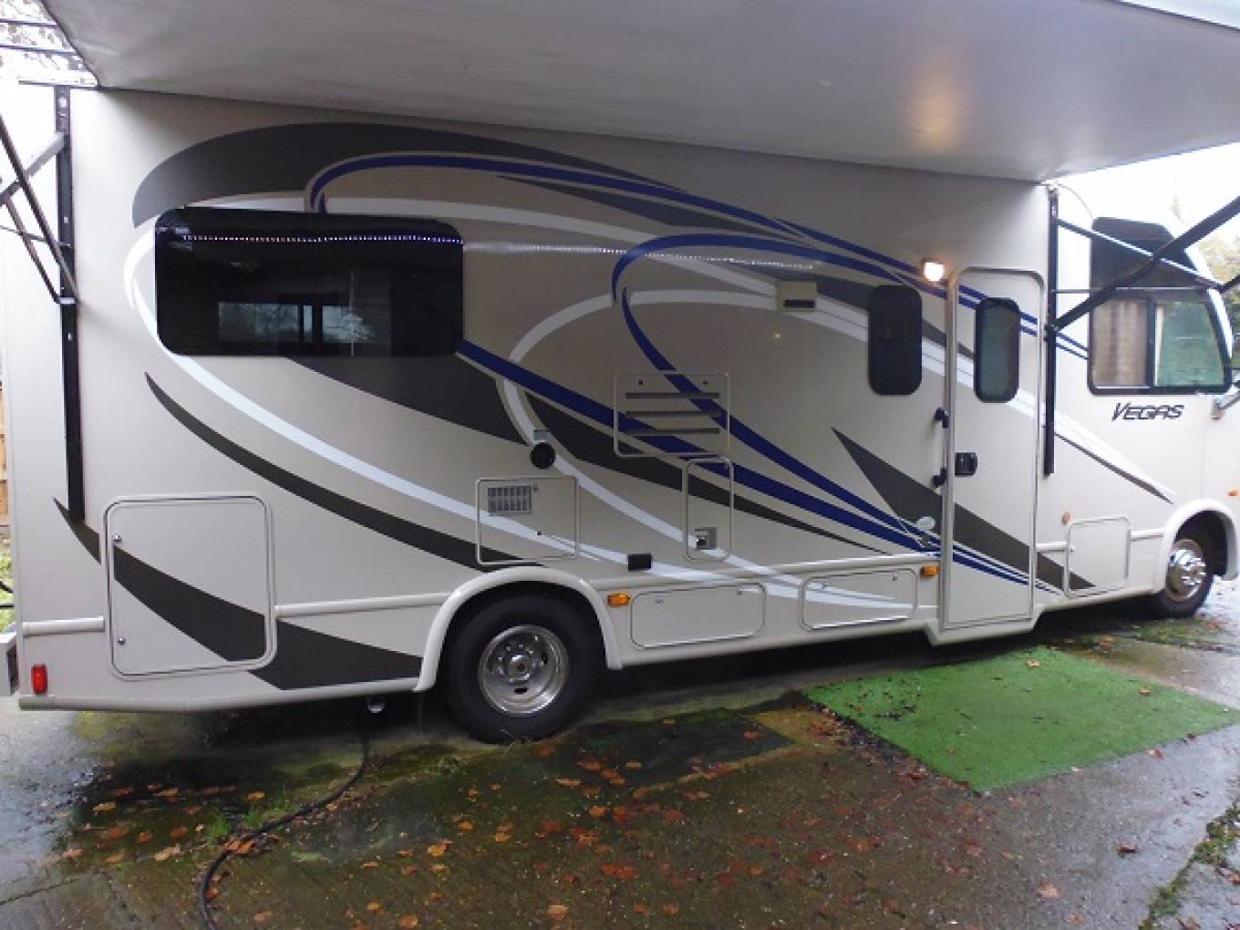 This is an AS NEW example of the Thor Vegas 24.1. At only 24ft long, this usable American RV has all the benefits of a luxury motorhome without the drawbacks of size. With only 3k miles covered by one careful owner, this is a rare opportunity to buy a newish RV without breaking the bank. With a single slideout in the living area, this 5 berth van has 2 singles to the rear that can make into a double, pullout sofabed and an electrically operated single above the cab. With a fantastic bathroom and the luxurious kitchen you would expect of an RV, this van really would make an ideal full timers motorhome. This one includes cab and habitation aircon, reverse camera, alarm, 2x tvs, petrol generator, gas tank and a towbar. More pictures available on request. Based in Kent.