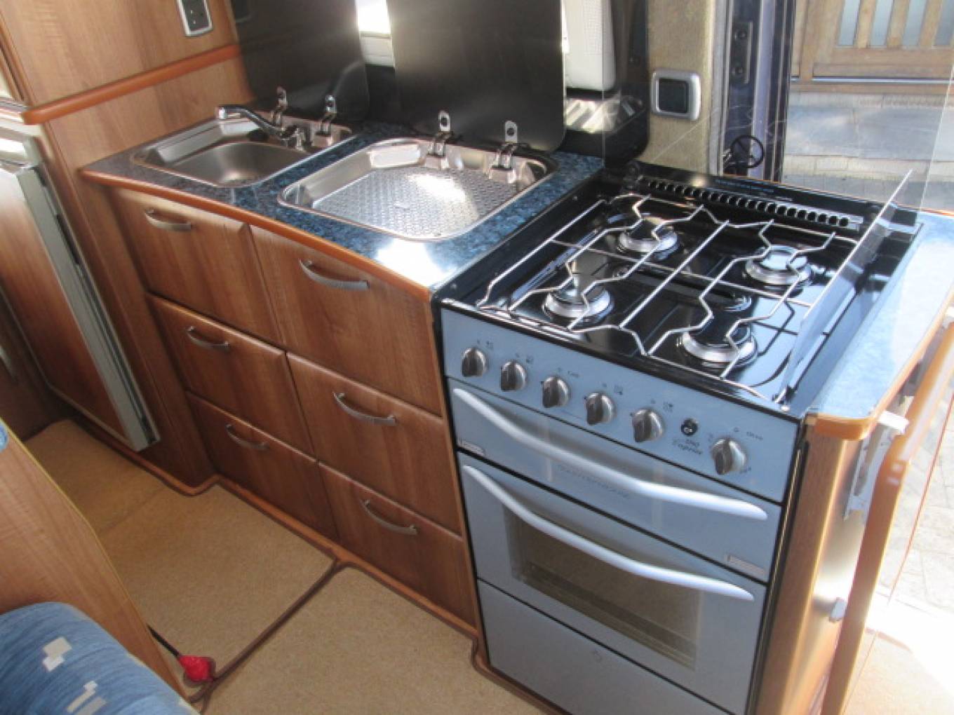 The Kitchen Area has a Full Oven, Hob, Grill, Sink plus 3 Way Fridge Freezer plus Storage Cupboards