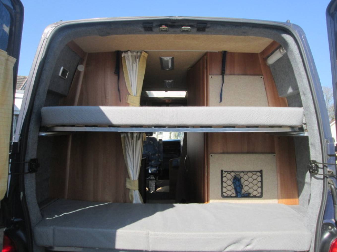 Sleeping is via the Rear Bunk Beds or via the Bench Seat which can be used as a Single or pull forward to make a small Double. ( Please note the Bench Seat can be made into a Forward Facing Seat with belts for travelling with passengers. )