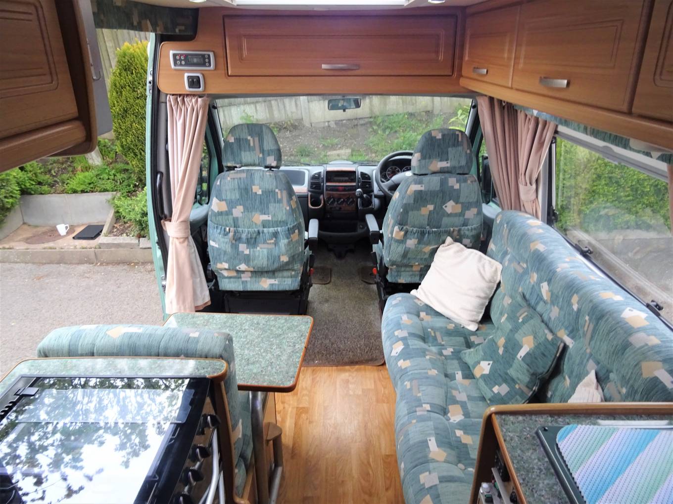 In the cab, the vehicle has a manual 5 speed gearbox, electric windows on both sides. Externally there is a Thurle wind out awning which is electric when connected to mains hook up.