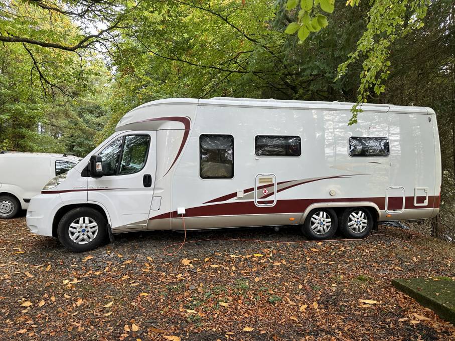 Hobby 750 ELC Toskana Exclusive Motorhome, Registered 5th October 2010 with only 32,016 miles the Toskana motorhome has a 3-litre diesel automatic engine with part service history. With a gross vehicle weight of 4.5 tonnes this motorhome requires a C1 driving licence vehicle length is 8.1 metres and the width being 2.4 metres and having a twin rear axle. Having had only four owners this motorhome reflects the care that has been taken in looking after it. entering the motorhome, you are taken straight away to the stunning cocktail style glass cabinet with backlit lighting underneath which is a drinks cabinet. into the centre kitchen there is a 3-ring gas hob with sink and work surface area along with a full-size 3-way fridge freezer along with oven space in the cupboard specifically for a microwave oven. Towards the front of the kitchen area is the lounge and dining area with all seating trimmed in leather and in great condition with a table situated between a bench seat and the front 2 captain style seats with the bench style seat to the side. There is plenty of seating within this 4-berth motorhome along with more than adequate storage. towards the rear are fixed twin beds with more storage underneath which is also accessible from the exterior the vehicle. passing the twin rail beds there is a rear washroom with walk in shower separate to the toilet and a wash basin additionally with further storage within. There is a lady lighting throughout the motorhome and the flooring has recently been upgraded. There are plenty of three pin plug sockets throughout and there are three TV points to choose from. There is habitation air con within the main living area which is also heated by a truma boiler providing blown air and warm water. Furthermore, there has been an upgraded alarm installed into the habitation area which is covered by PIR sensors. There are two leisure batteries providing adequate power throughout along with external connection. there is LED delighting throughout along with 4 skylights providing ample natural lighting. For the more there are blinds and flyscreens on all windows. Additionally, this is fitted with a 3-bike rack to the rear along with reversing camera, the motorhome is fitted with a wind out canopy additionally will come with a full star camp awning. the cab area he's also fitted with air conditioning, a DAB radio and leather trimmed front seats there are two sets of keys with this motorhome. this is a very highly sought-after configuration with fixed twin beds and rear washroom it makes the most use of the space available and will provide a pleasurable living experience.