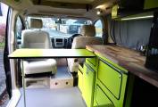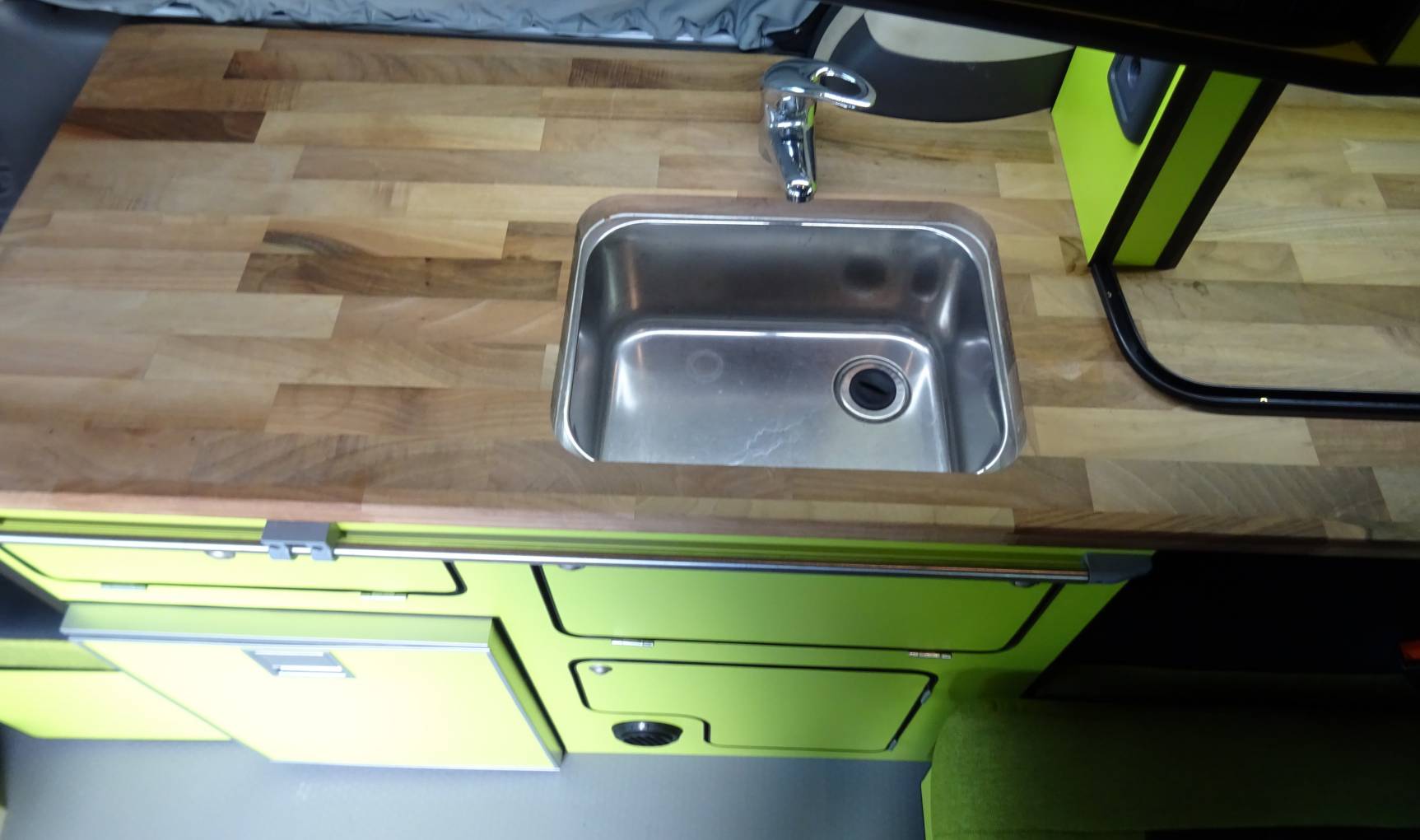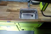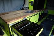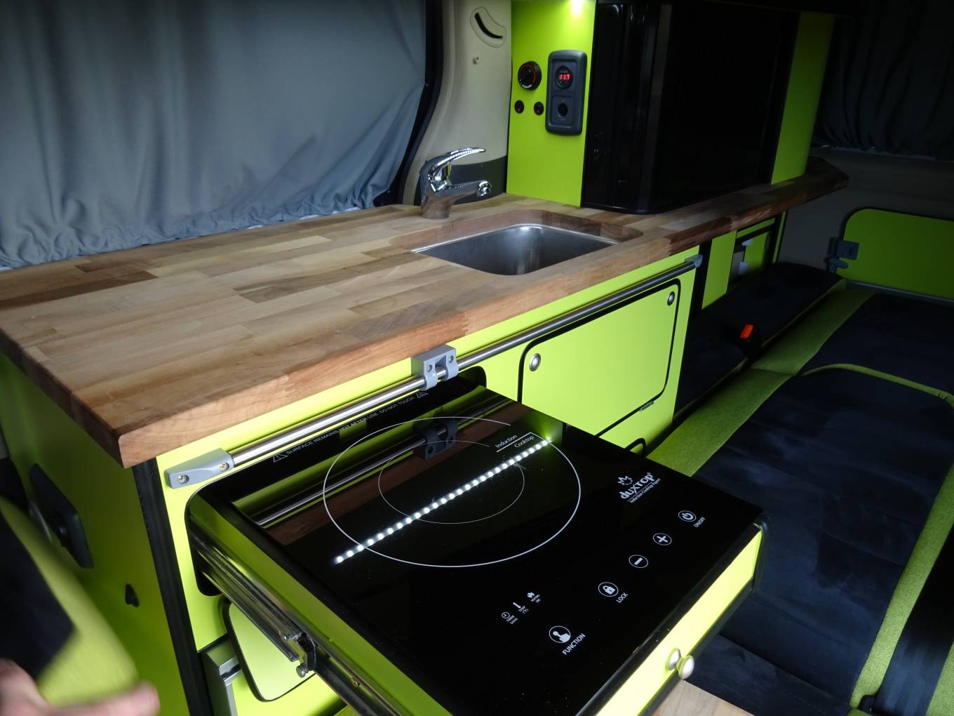 front swivel seat, fold-away table, Electric induction hob and stainless steel sink