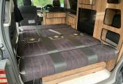 This high level quality conversion offers a 4 berth sleeping capacity along with 5 travelling seats. The cab which boasts 2 of the 5 travelling seats allows the passenger seat to swivel and face the remaining 3 travelling seats. In the Cab there is a Sony touch screen interface which includes sat nav, radio, DVD player, MPH digital speedometer along with with electric windows, mirrors and air conditioning.