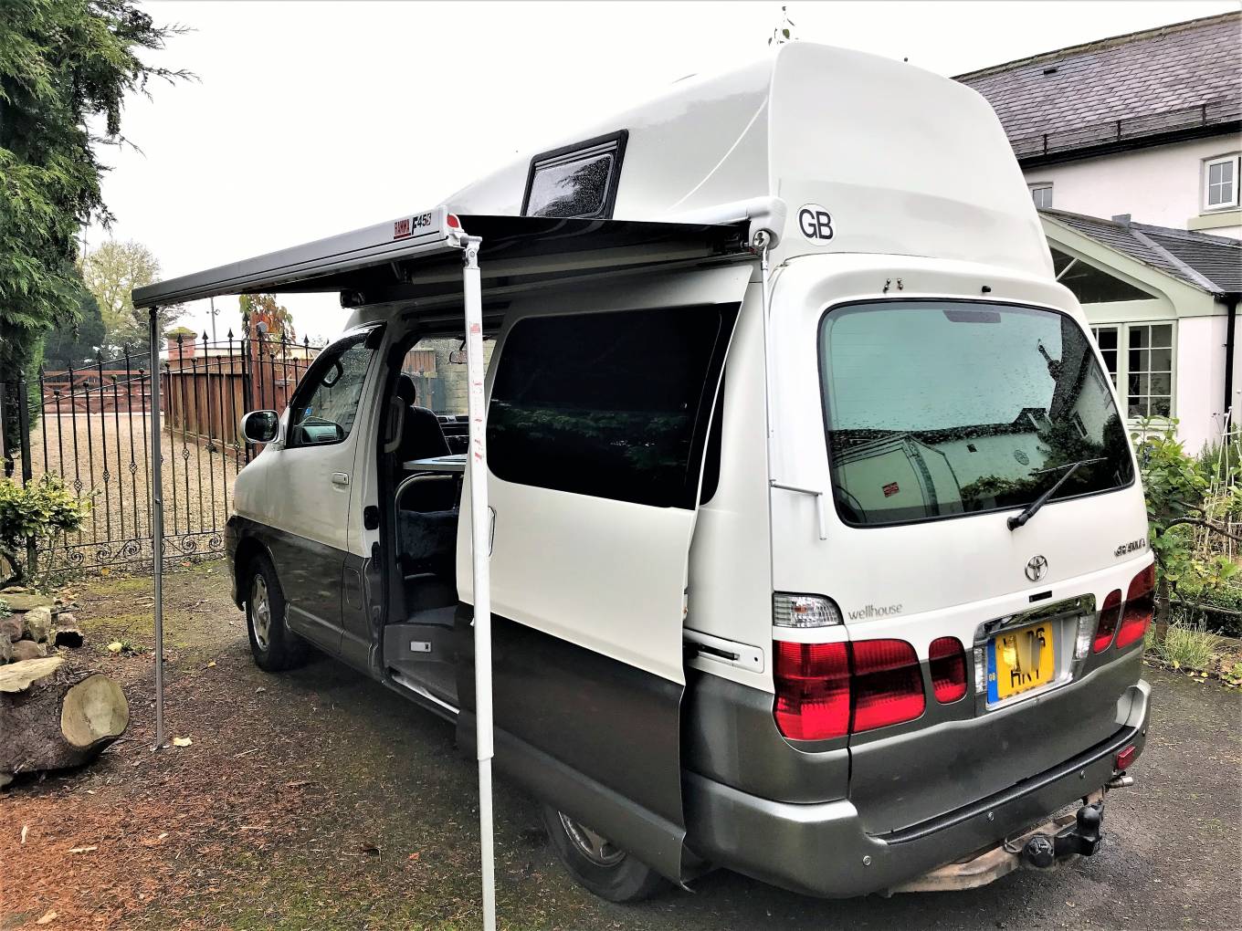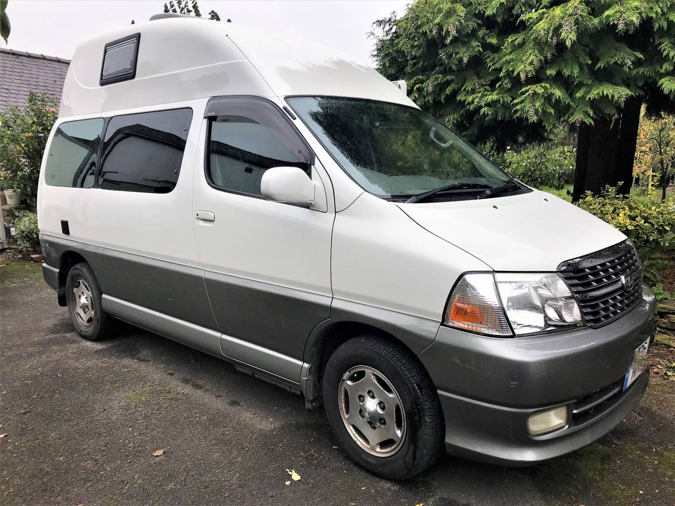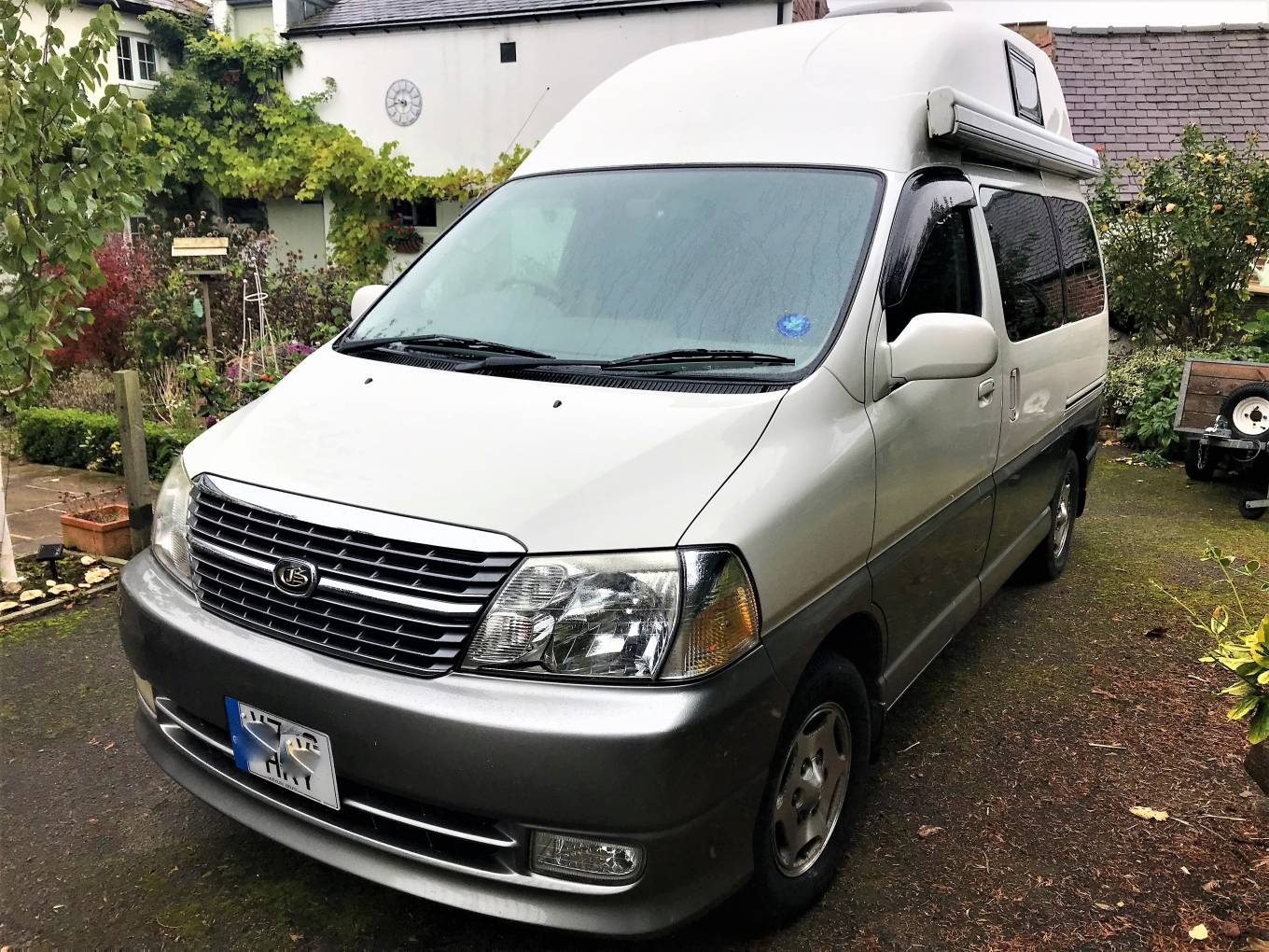 Call with any questions 01423 609985. This is a Toyota Granvia Grand Hiace camper van and is a stunning conversion by Wellhouse in Huddersfield. First registered in Japan in October 1999, it was imported in 2010 and has all the extras you'd expect including full electrics, Webasto heating, awning, automatic gearbox, towbar and parking sensors. It has a high ceiling, so someone of 6 feet can stand up in it, 5 seatbelts, passenger swivel seat and can sleep 2 people in the comfortable rock n roll bed. The whole vehicle is in fantastic condition both inside and out and comes with MOT until Dec 2020 . Part Exchanges welcomed on this vehicle, for further information and photos please call us on 01423 609985 quoting reference 112443.